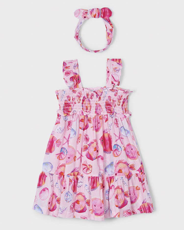 Abito Mayoral in fantasia pesci con fascia abbinata in puro cotone