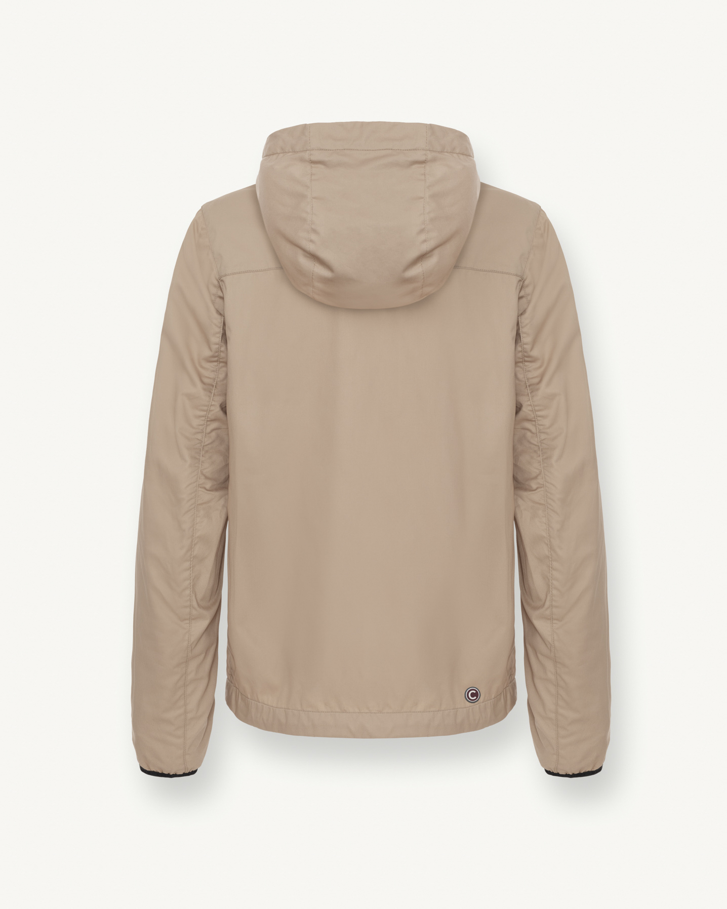 Giubbino sailor blu reversibile in verde militare in tessuto opaco ultraleggero con trattamento idrorepellente. Chiusura con zip a doppio cursore, tasche laterali con cerniera, logo bollo Colmar Originals applicato sulla manica sinistra. Fondo e polsi rifiniti in maglia a costine.