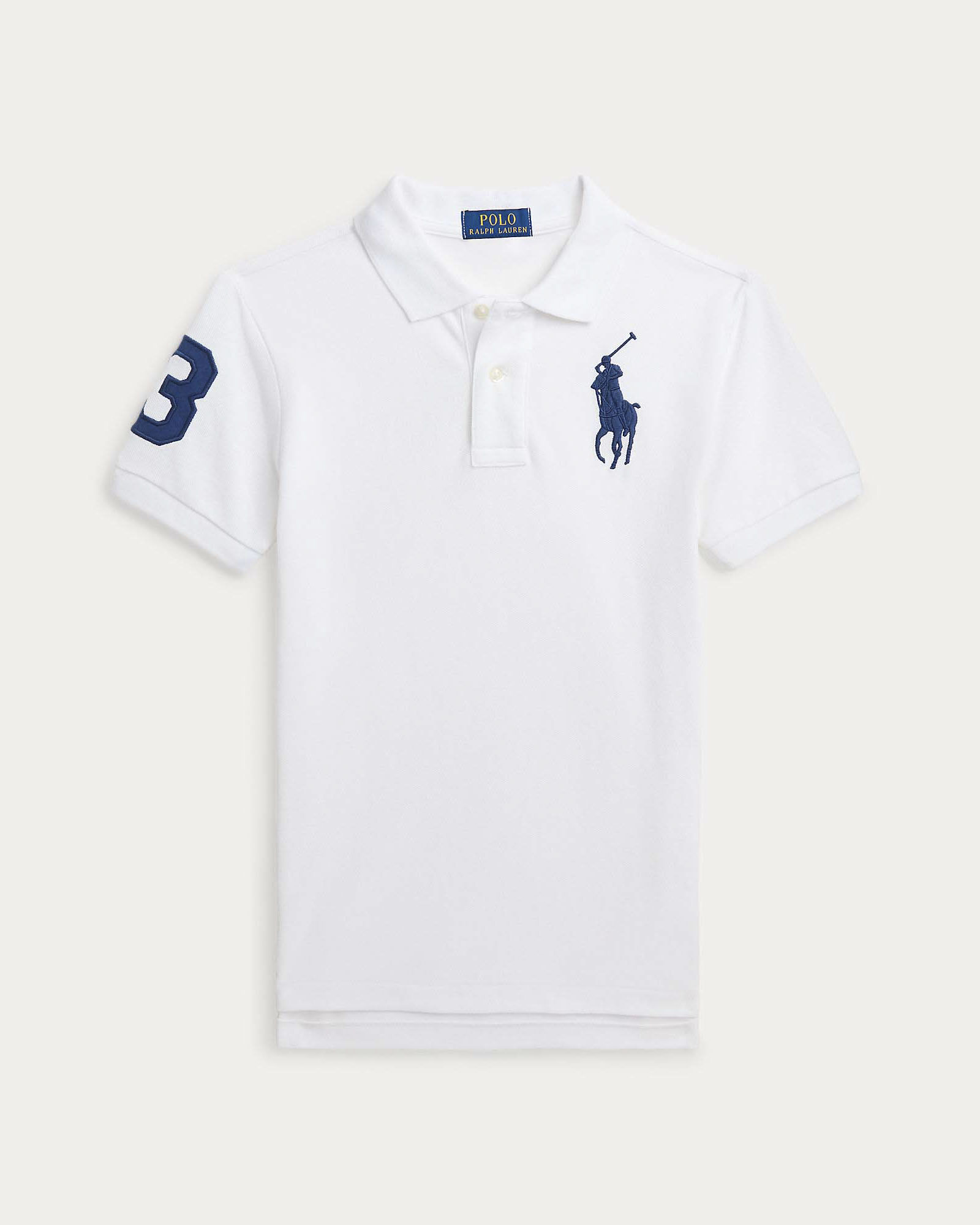 Polo bianca Ralph Lauren mezza manica con maxi logo pony e numero 3