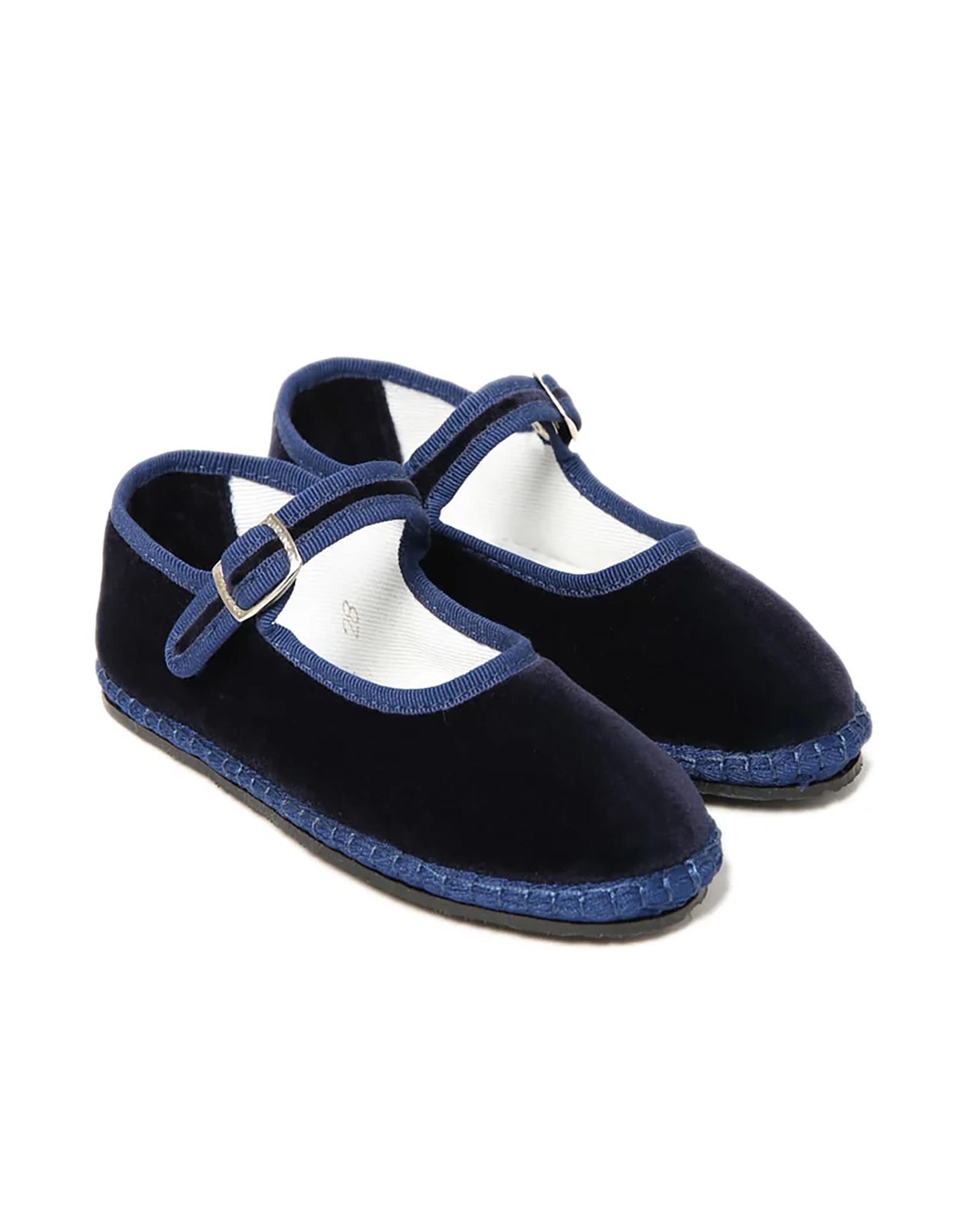 Baby friulane Le Papù in velluto blu con cinturino regolabile