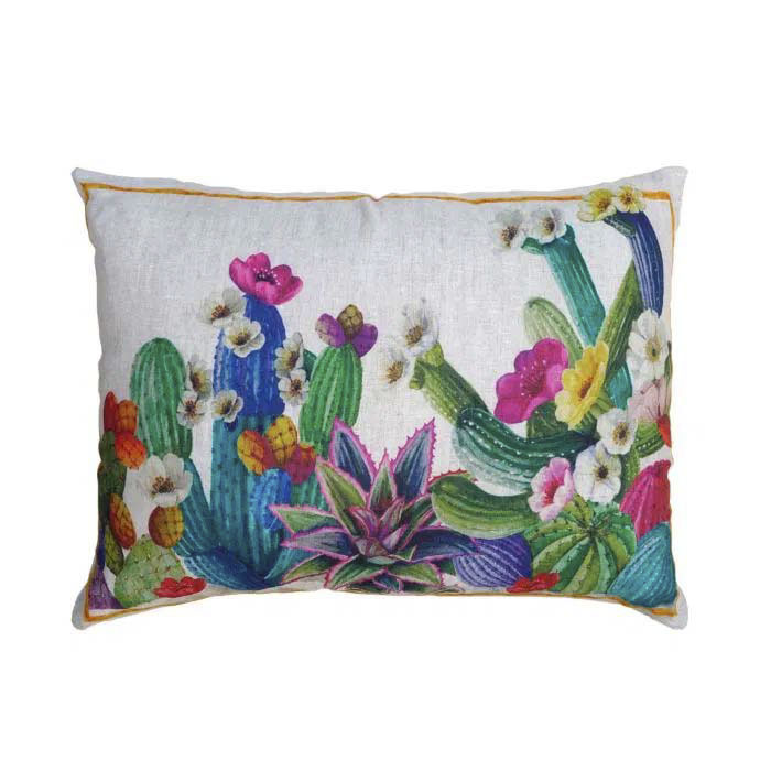 Federa per cuscino rettangolare Kactus in lino stampato multicolor