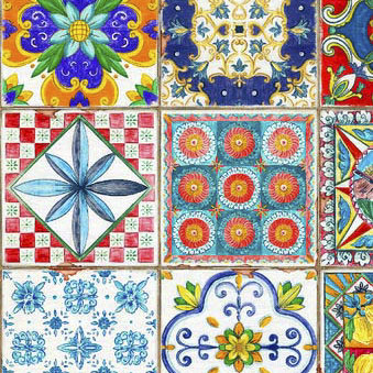 Runner Camastra in cotone a fantasia piastrelle siciliane multicolor