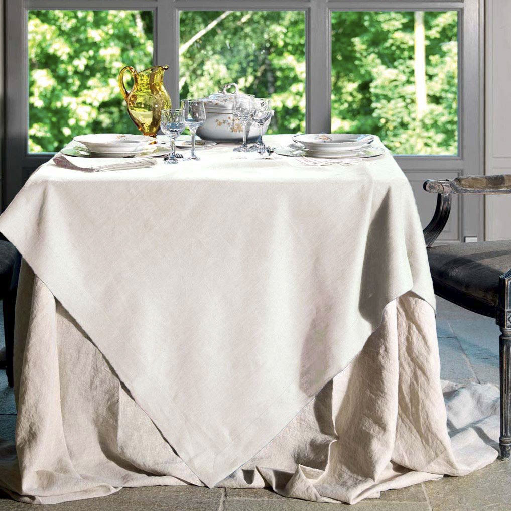 Tovaglia quadrata Tiziano in lino a tinta unita crema 85x85