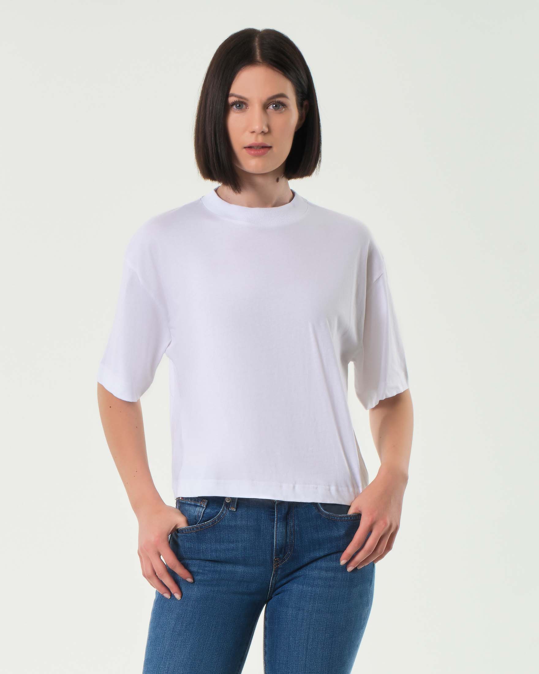 T-shirt bianca Hlo! in cotone con cut out sulla schiena e coulisse