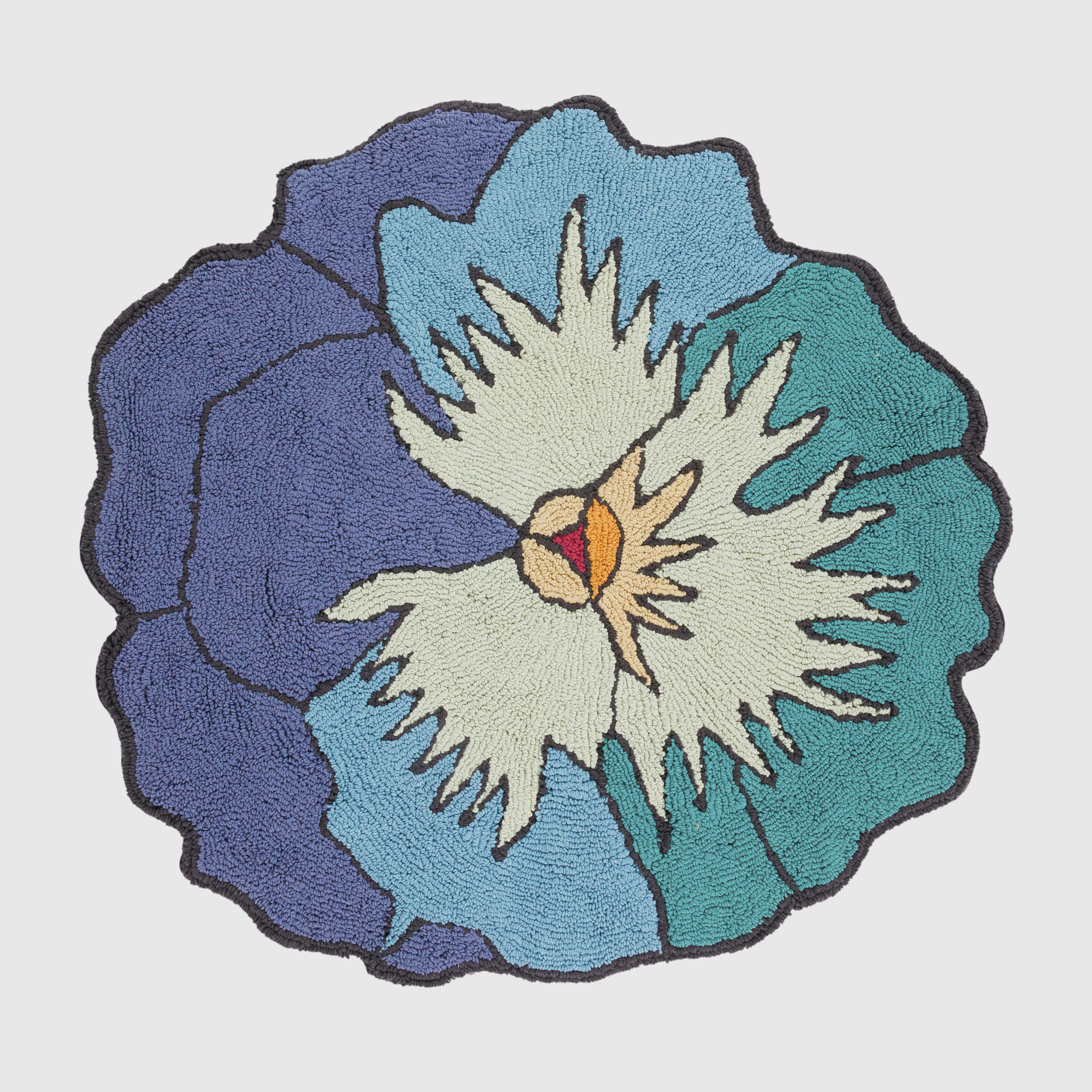 Tappetino da bagno a fiore Parma in cotone azzurro