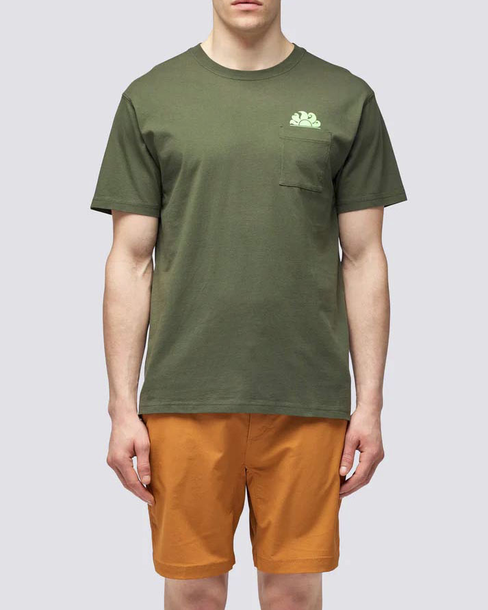 T-shirt mezza manica Sundek verde militare con taschino al petto e logo sole -20%
