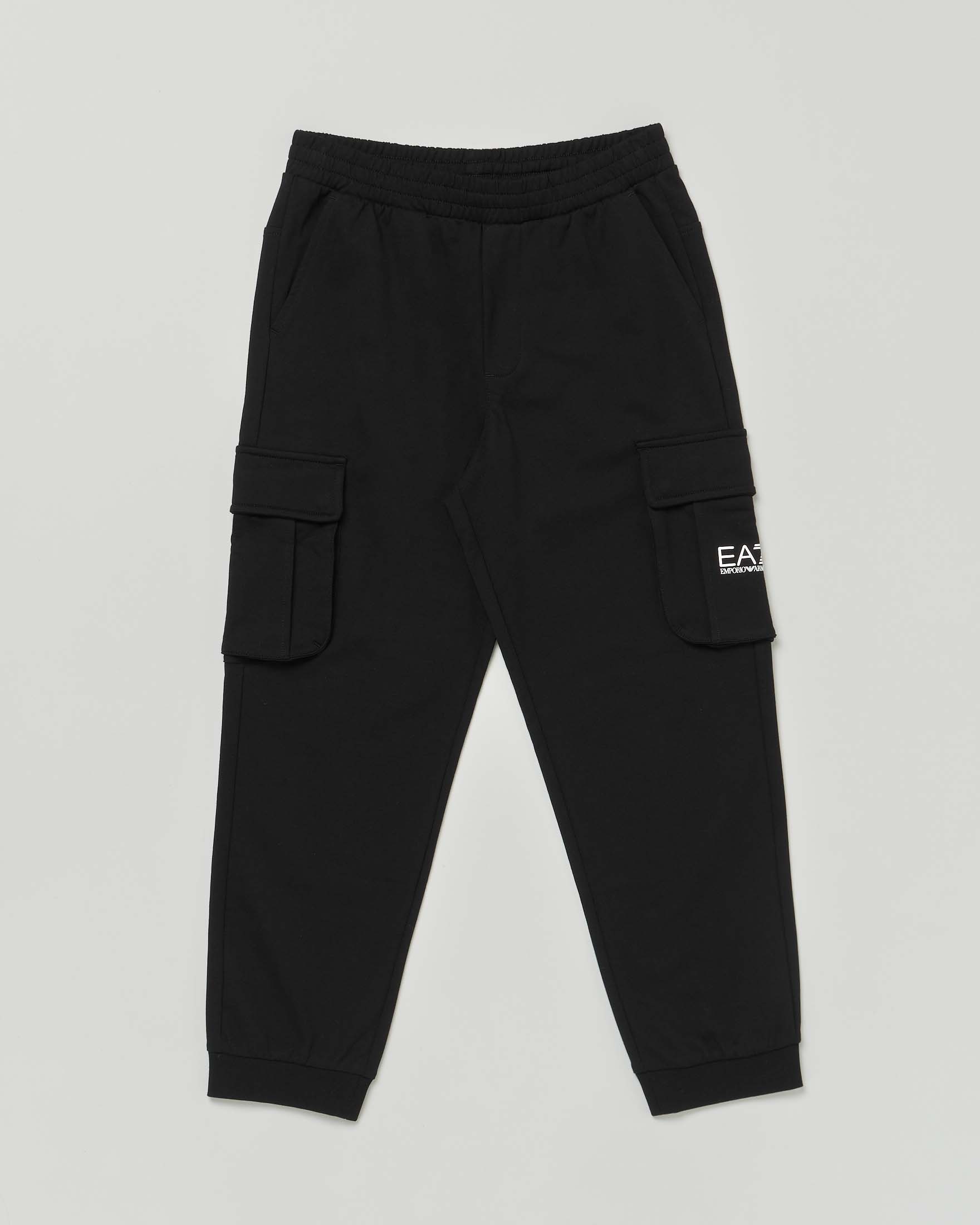 Pantalone cargo EA7 nero in felpa di puro cotone