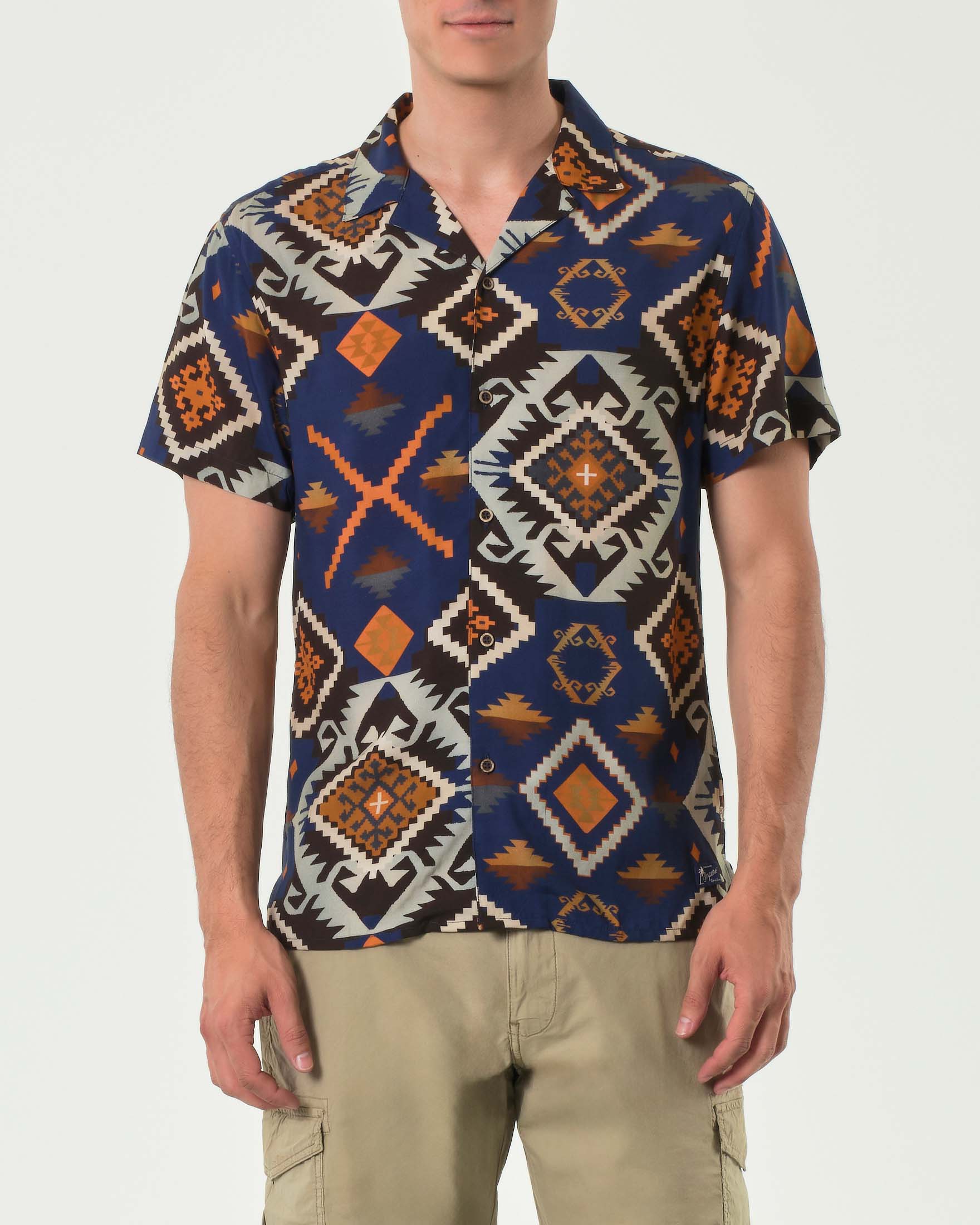 Camicia mezza manica Impure blu royal con fantasia navajo in pura viscosa -40%