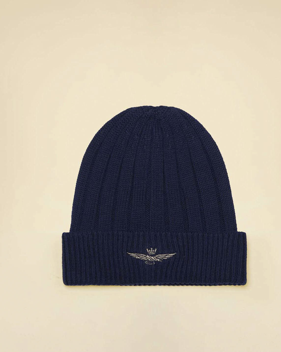 Berretto Aeronautica Militare blu con risvolto in puro cotone a coste