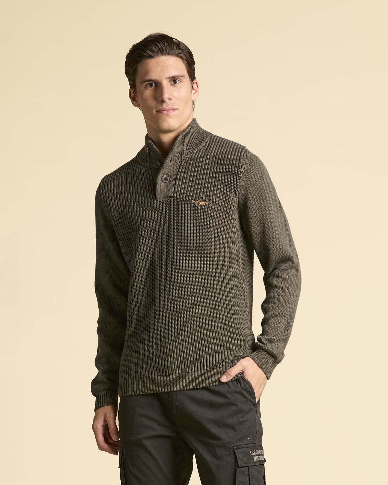 Maglia Aeronautica Militare color fango a coste inglesi con collo alto e apertura a bottoni -30%