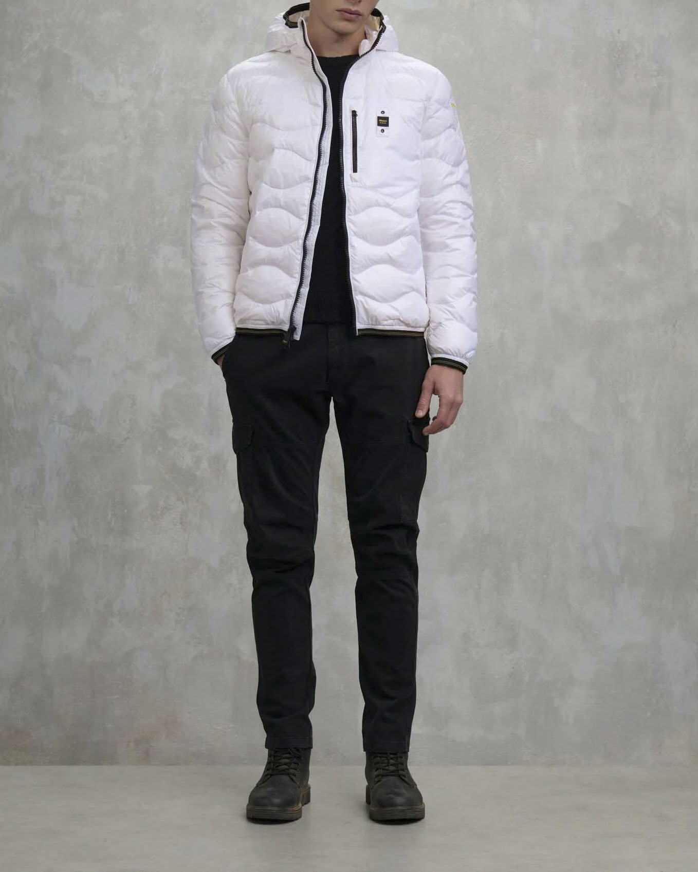 Piumino Wave Blauer bianco con cappuccio fisso e trapuntatura ad onde