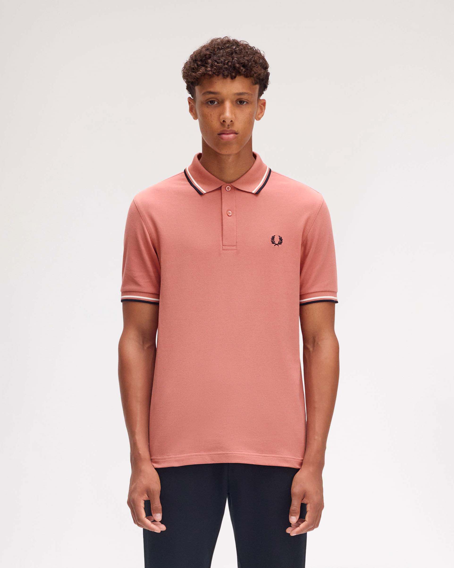 Polo Fred Perry rosa antico mezza manica con bordino blu e bianco