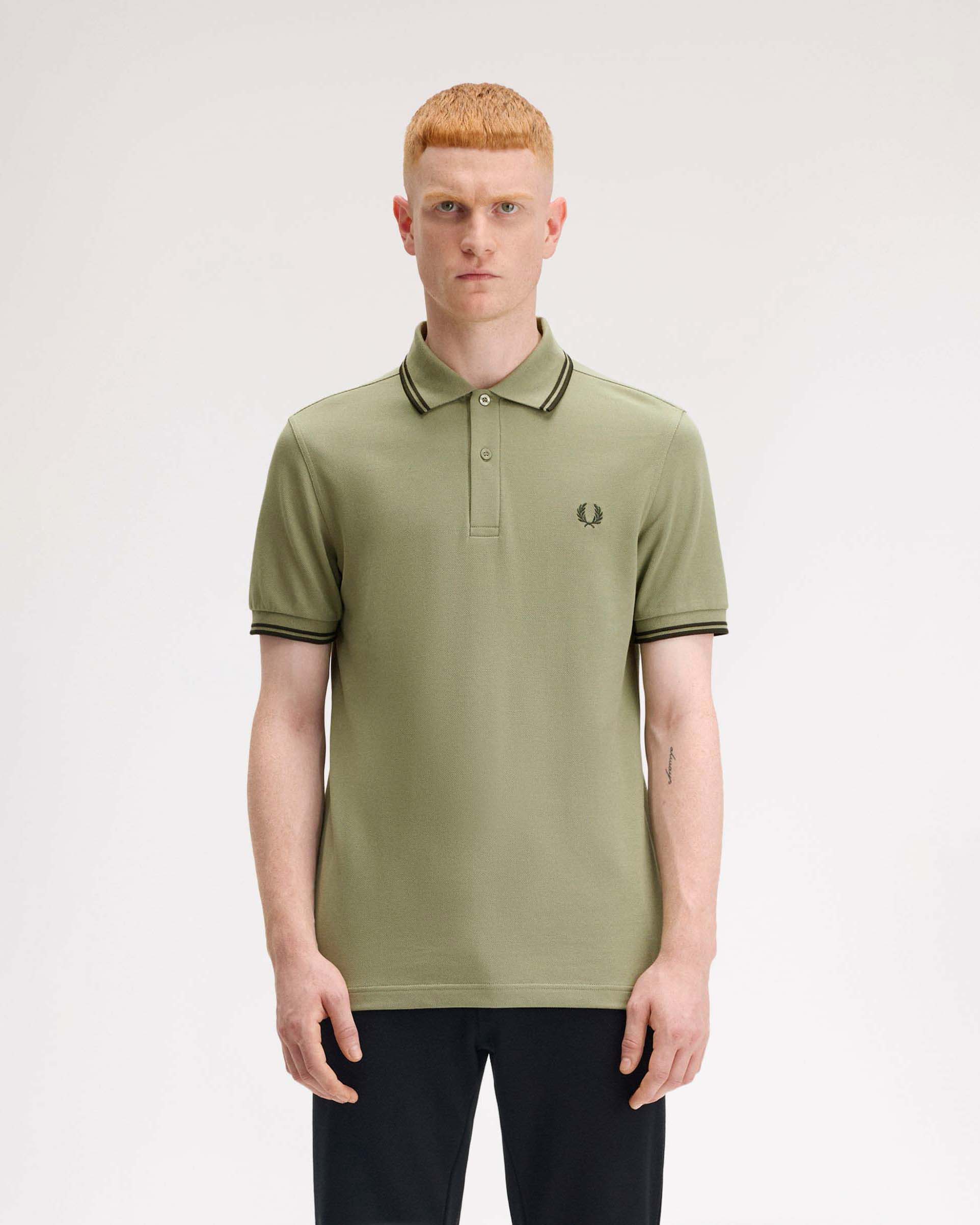 Polo Fred Perry verde salvia mezza manica con bordino militare