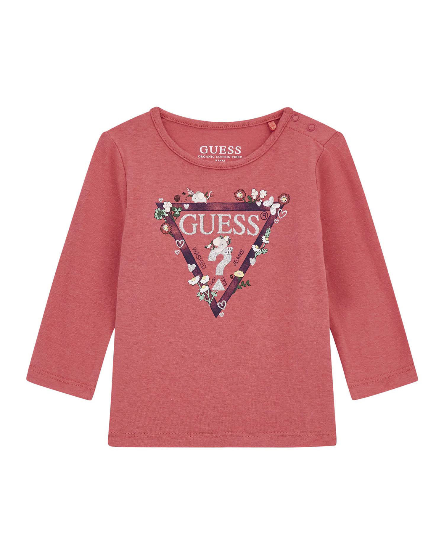 T-shirt Guess in cotone stretch color peonia con logo icon e fiorellini -30%