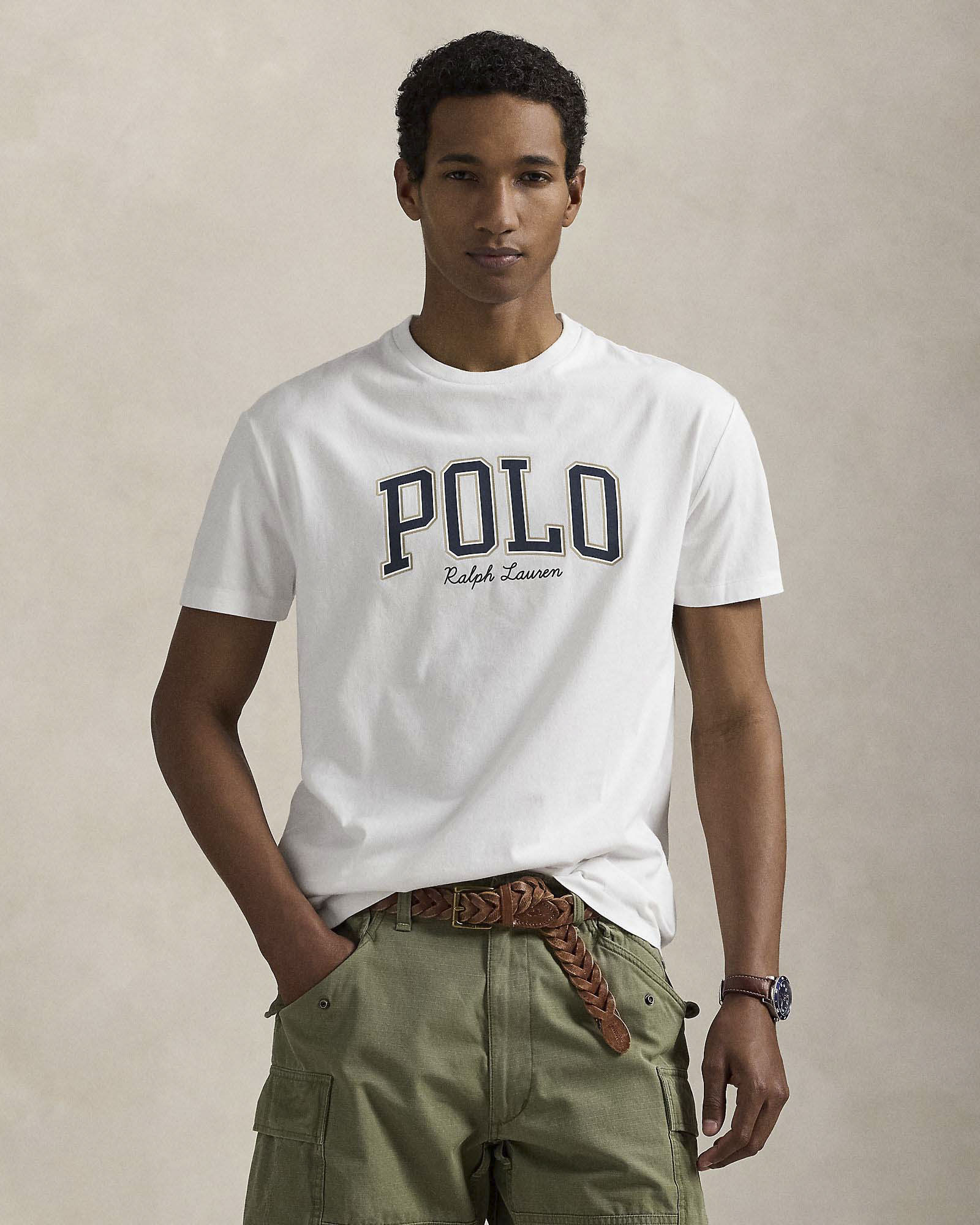 T-shirt Polo Ralph Lauren bianca mezza manica in puro cotone con stampa scritta Polo
