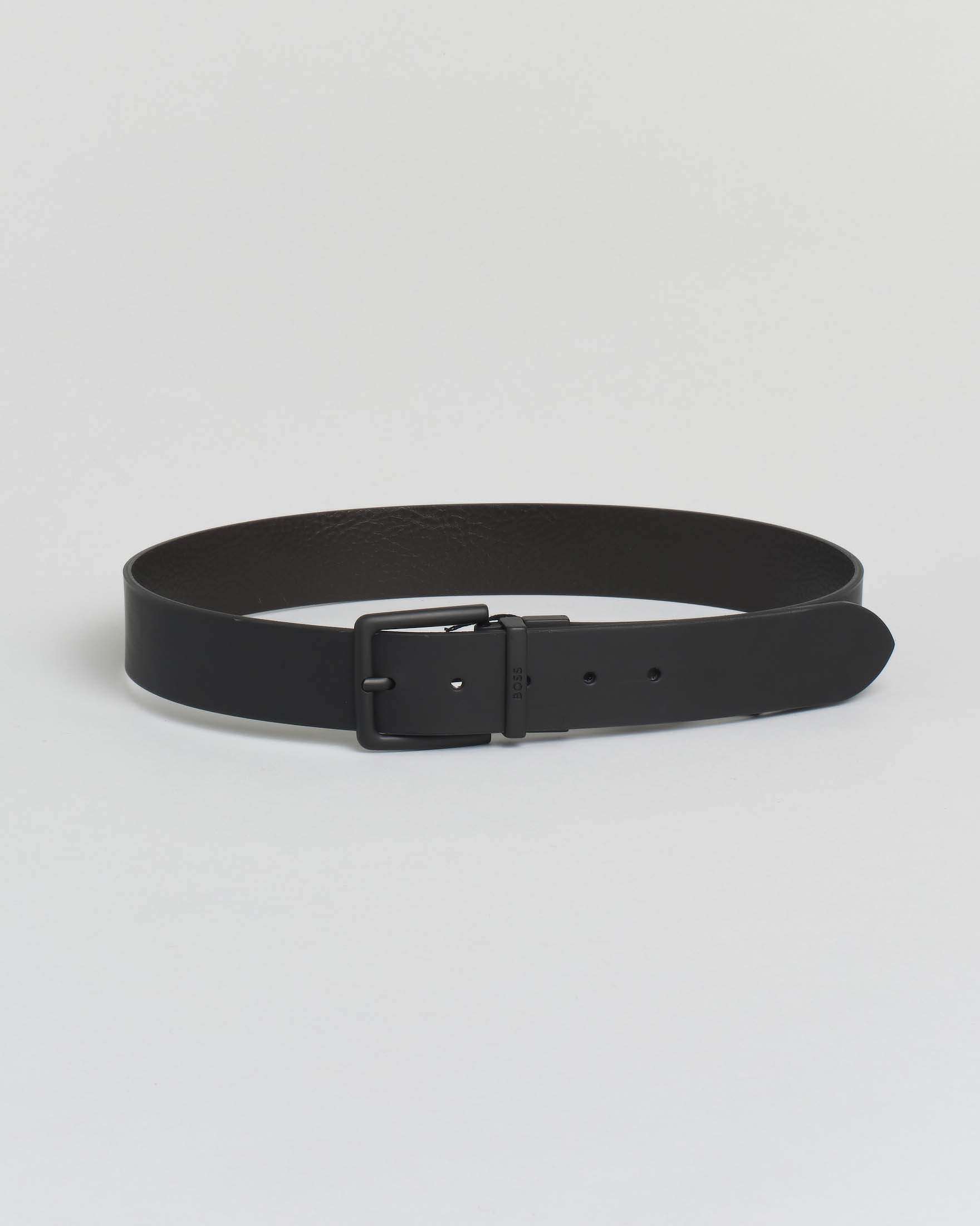 Cintura Boss in vera pelle nera liscia reversibile in martellata