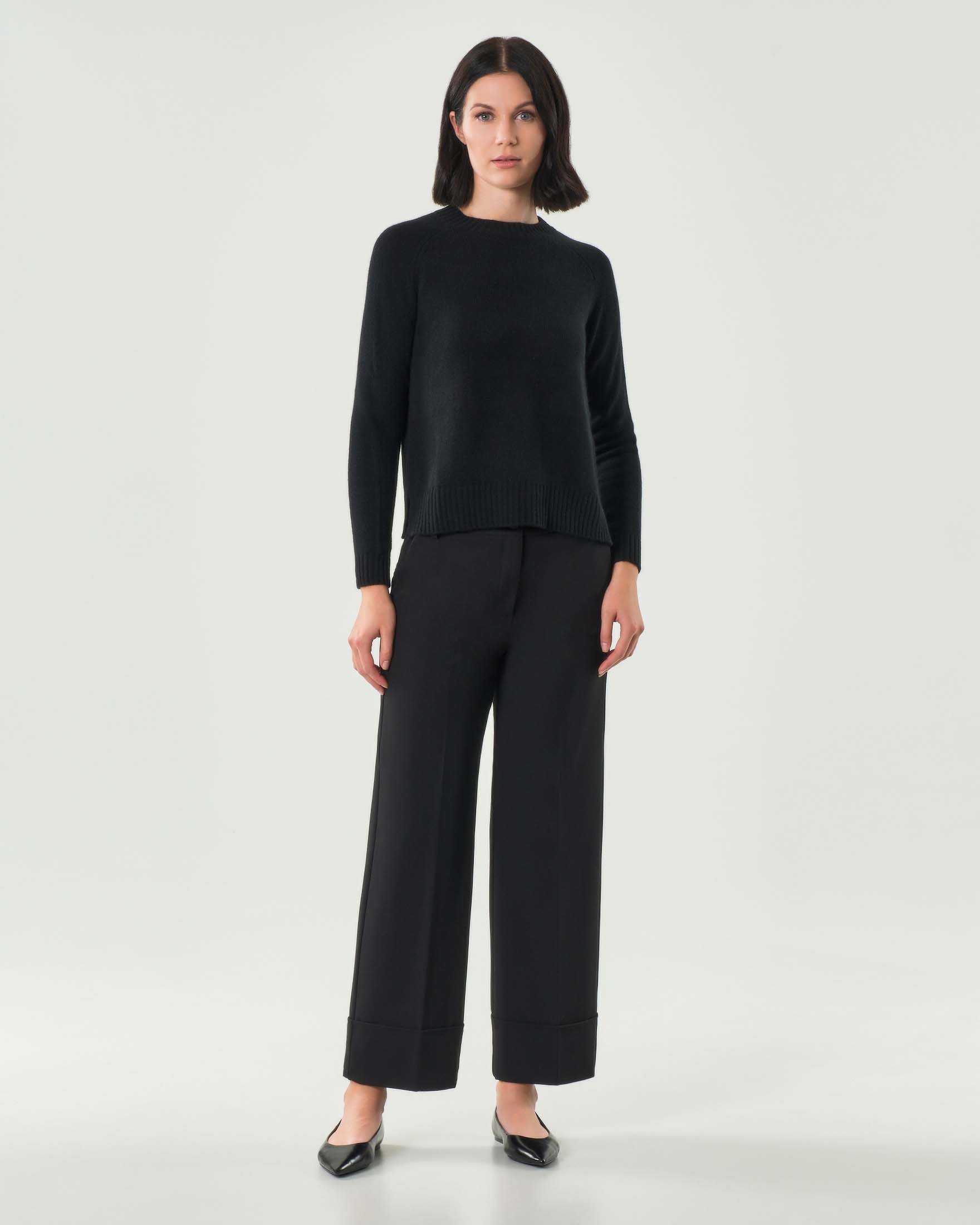Pantaloni neri alla caviglia Emme Marella con risvolto al fondo