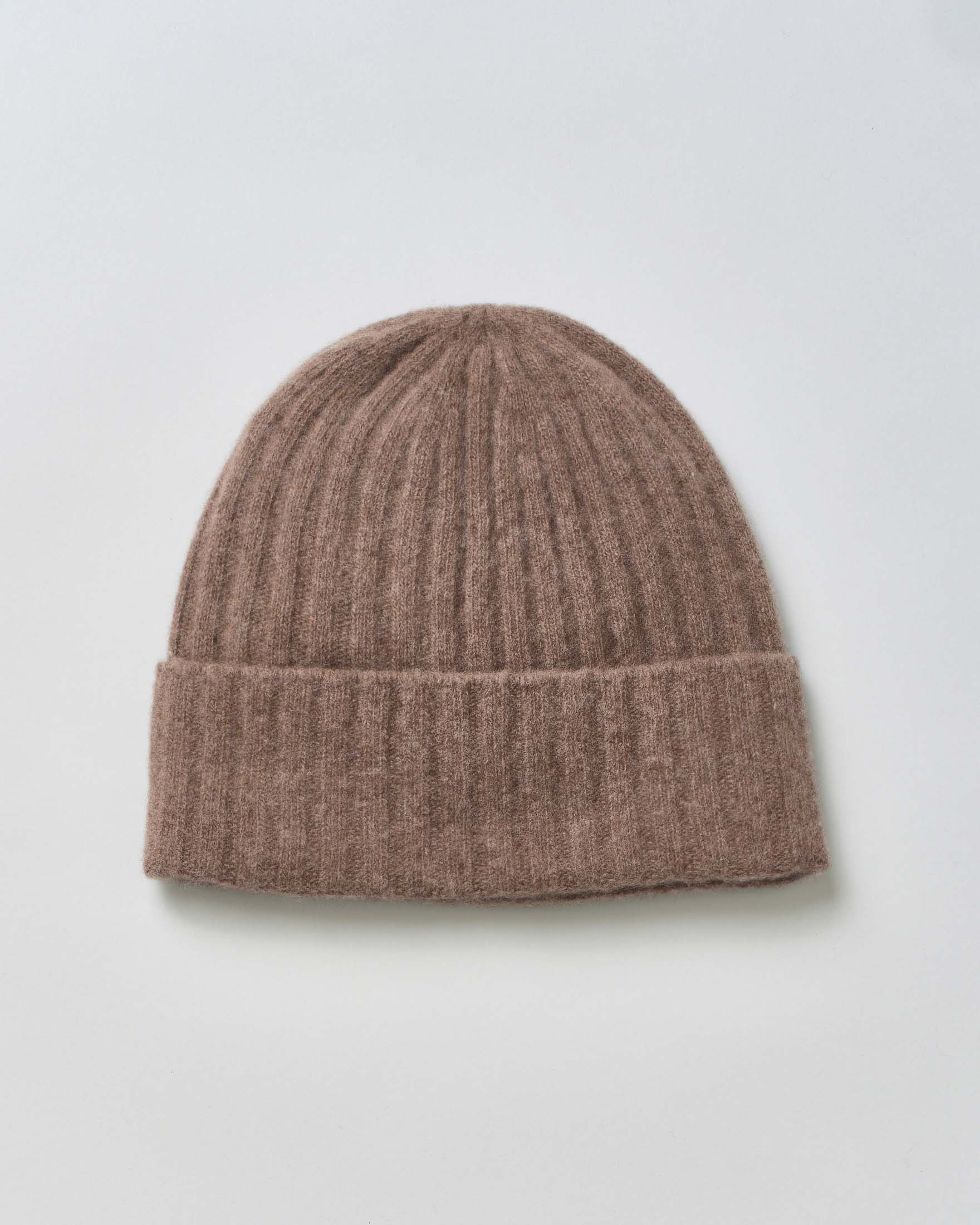 Berretto Santacana noce in misto lana merino e cachemire a coste con risvolto