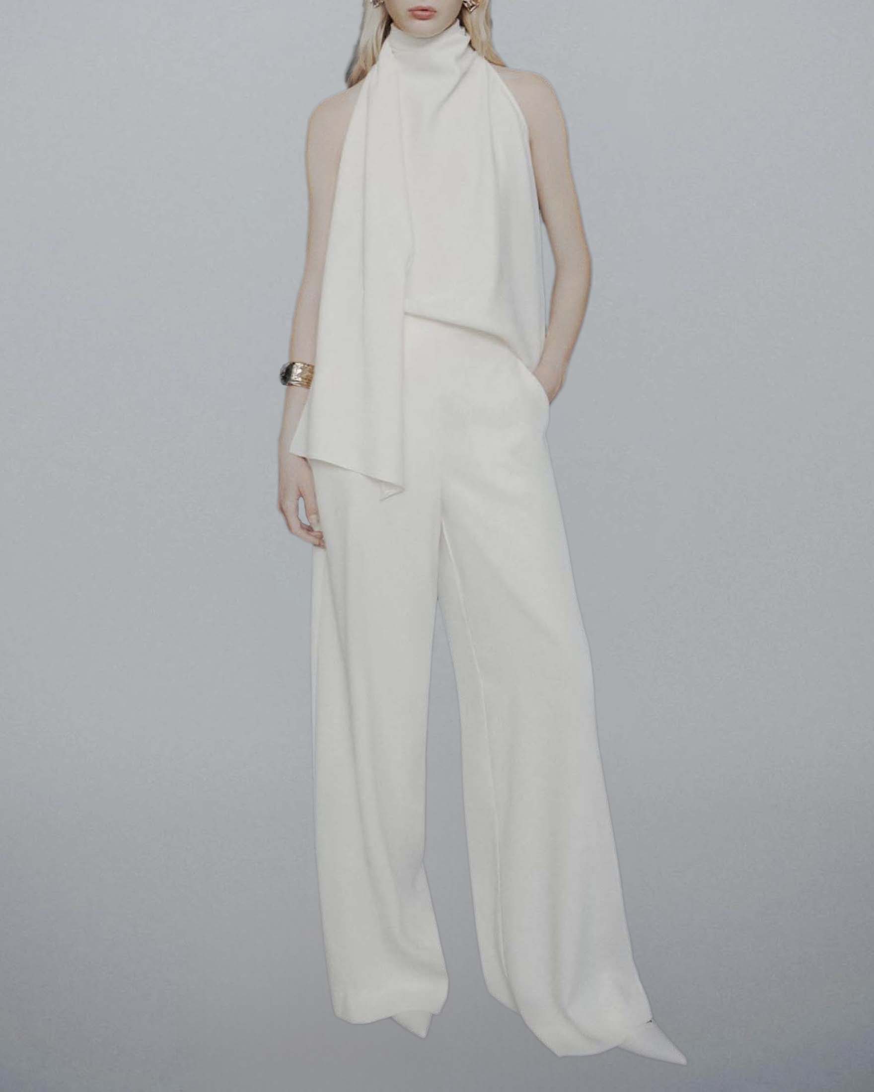 Pantalone ampio bianco Marella Art. 365 in crêpe envers satin