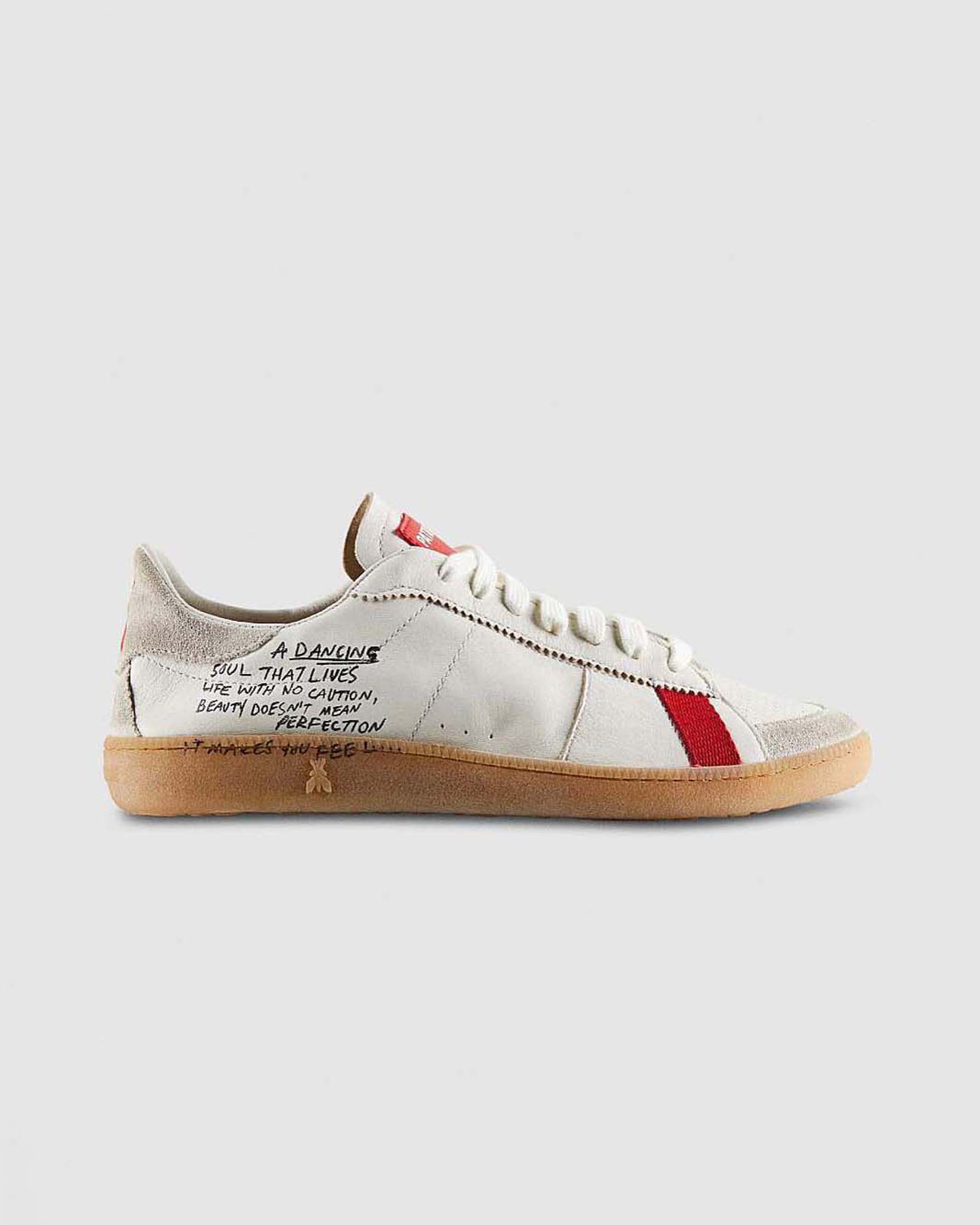 Sneakers bianche in pelle Patrizia Pepe con finiture a contrasto di colore bordeaux e scritte laterali -20%