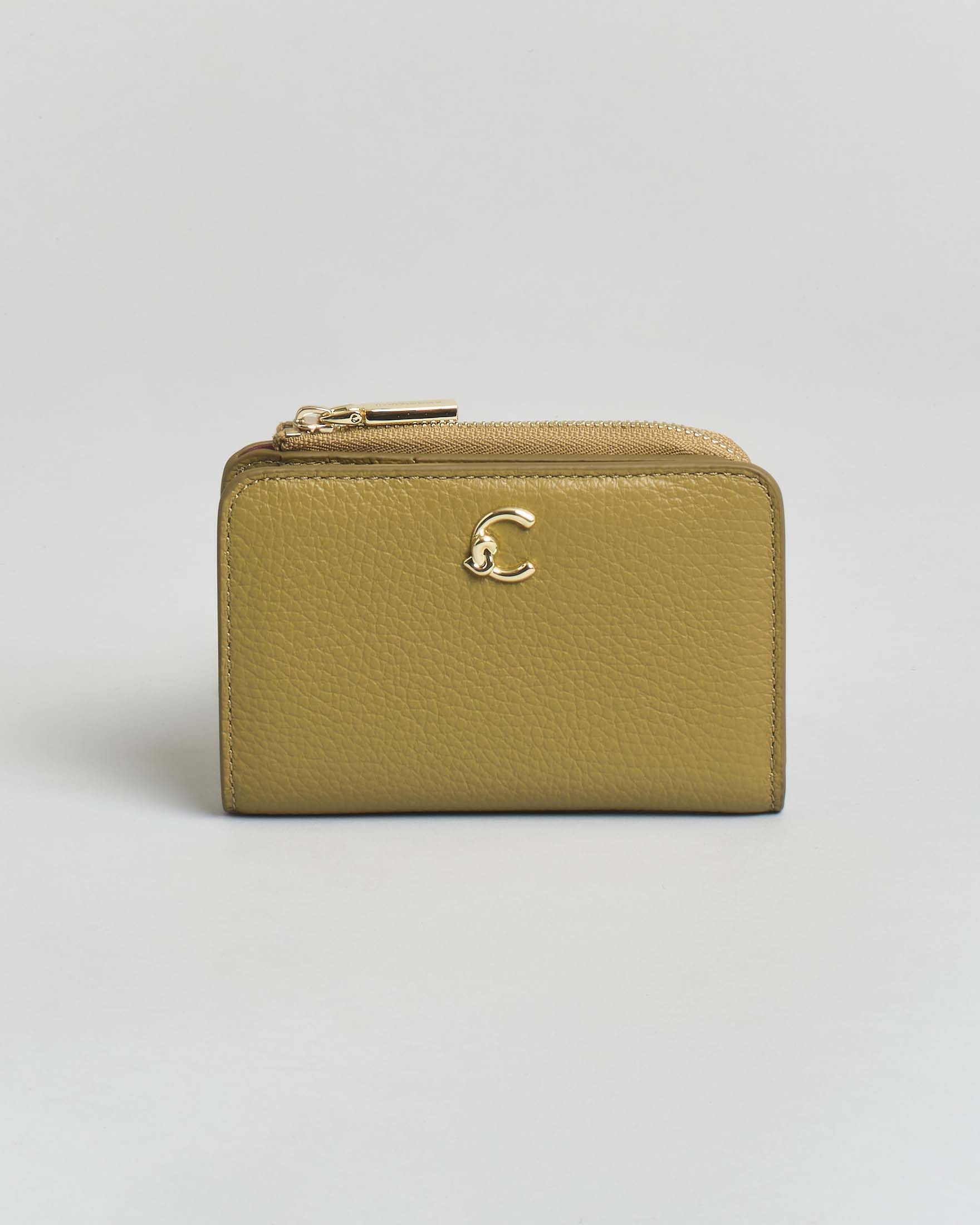 Portafoglio Coccinelle C-ME Small verde oliva in pelle martellata con portamonete chiuso a zip