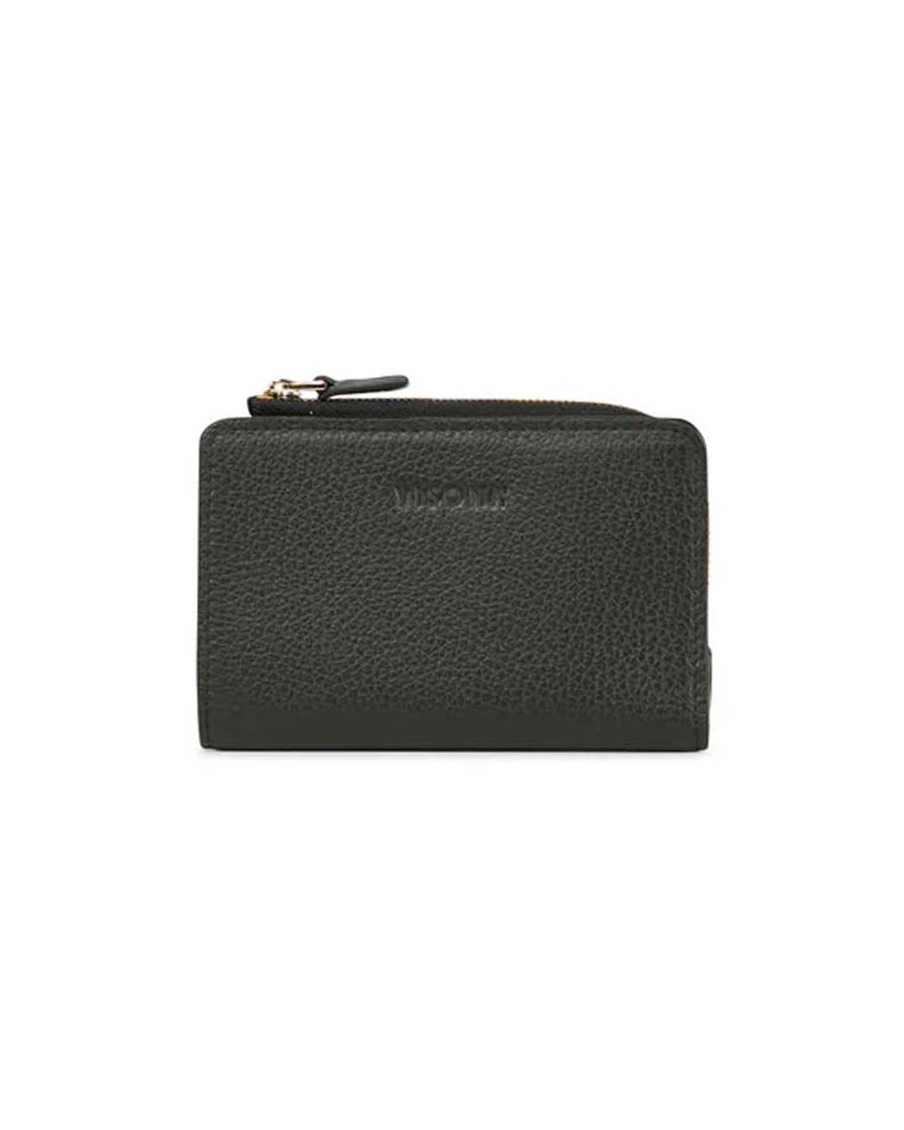 Portafoglio a libro nero Visonà in pelle martellata con portamonete chiuso a zip