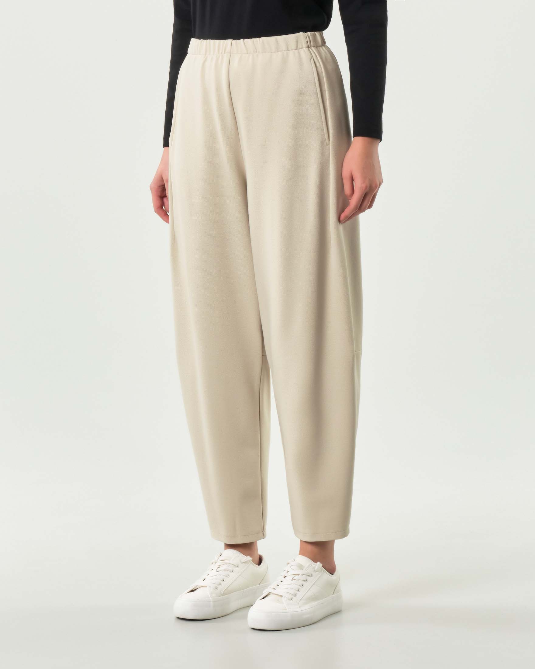 Pantaloni a pallocino Jurerê color gesso in tricot di misto viscosa stretch con elastico inserito in...