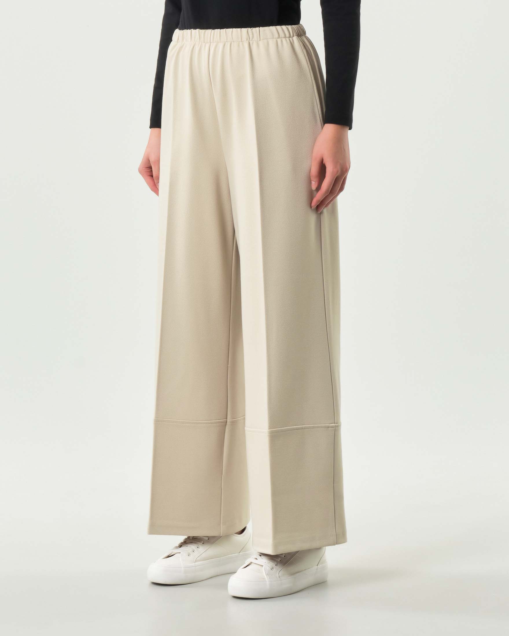Pantaloni super wide color gesso Jurerê in tricot di misto viscosa con elastico in vita