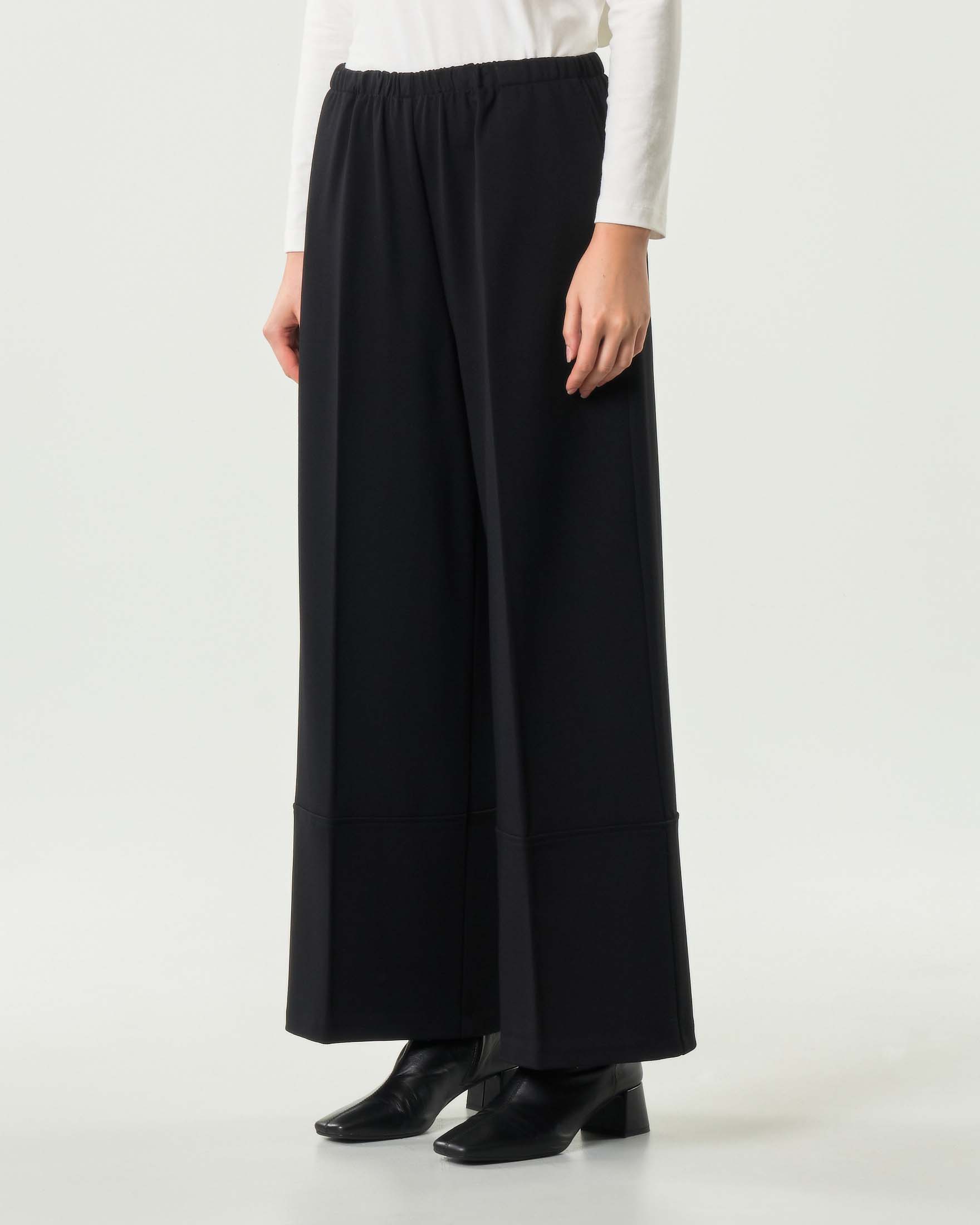 Pantaloni super wide neri Jurerê in tricot di misto viscosa con elastico in vita