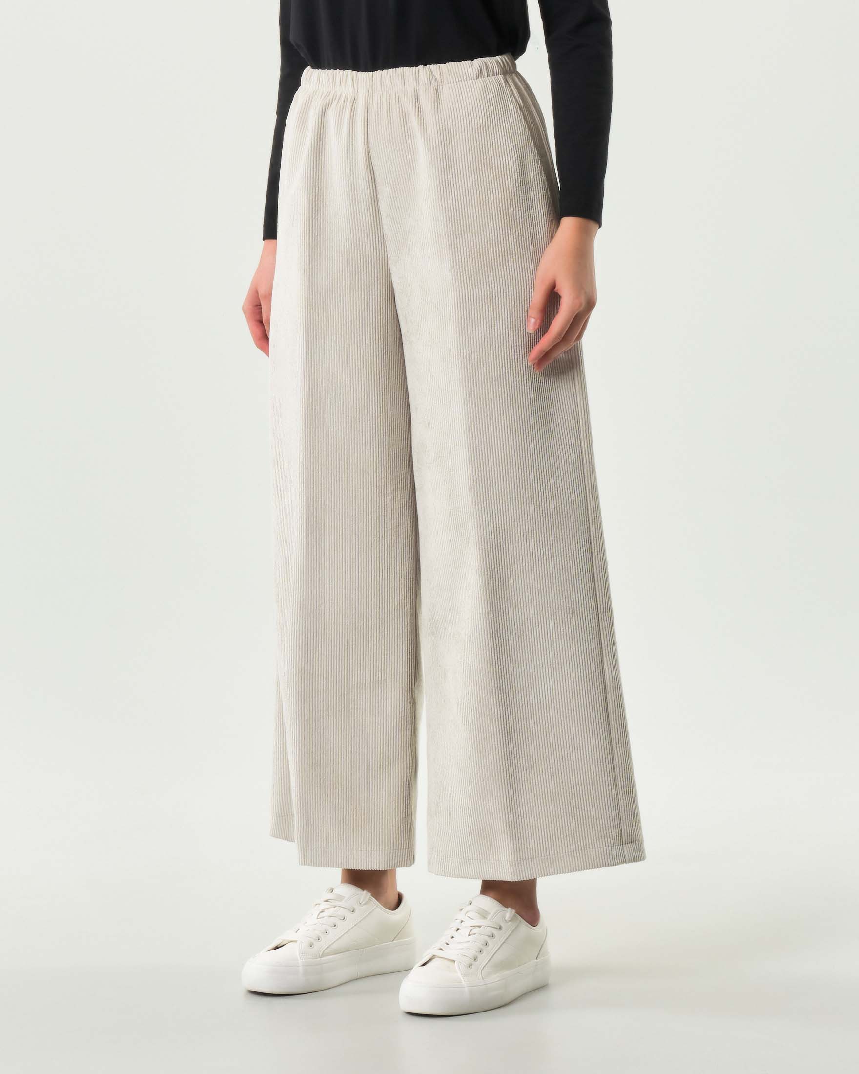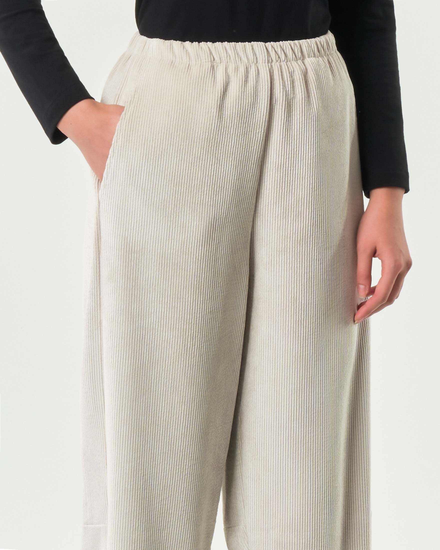 Pantaloni a pallocino Jurerê color gesso in velluto stretch a coste con elastico inserito in vita