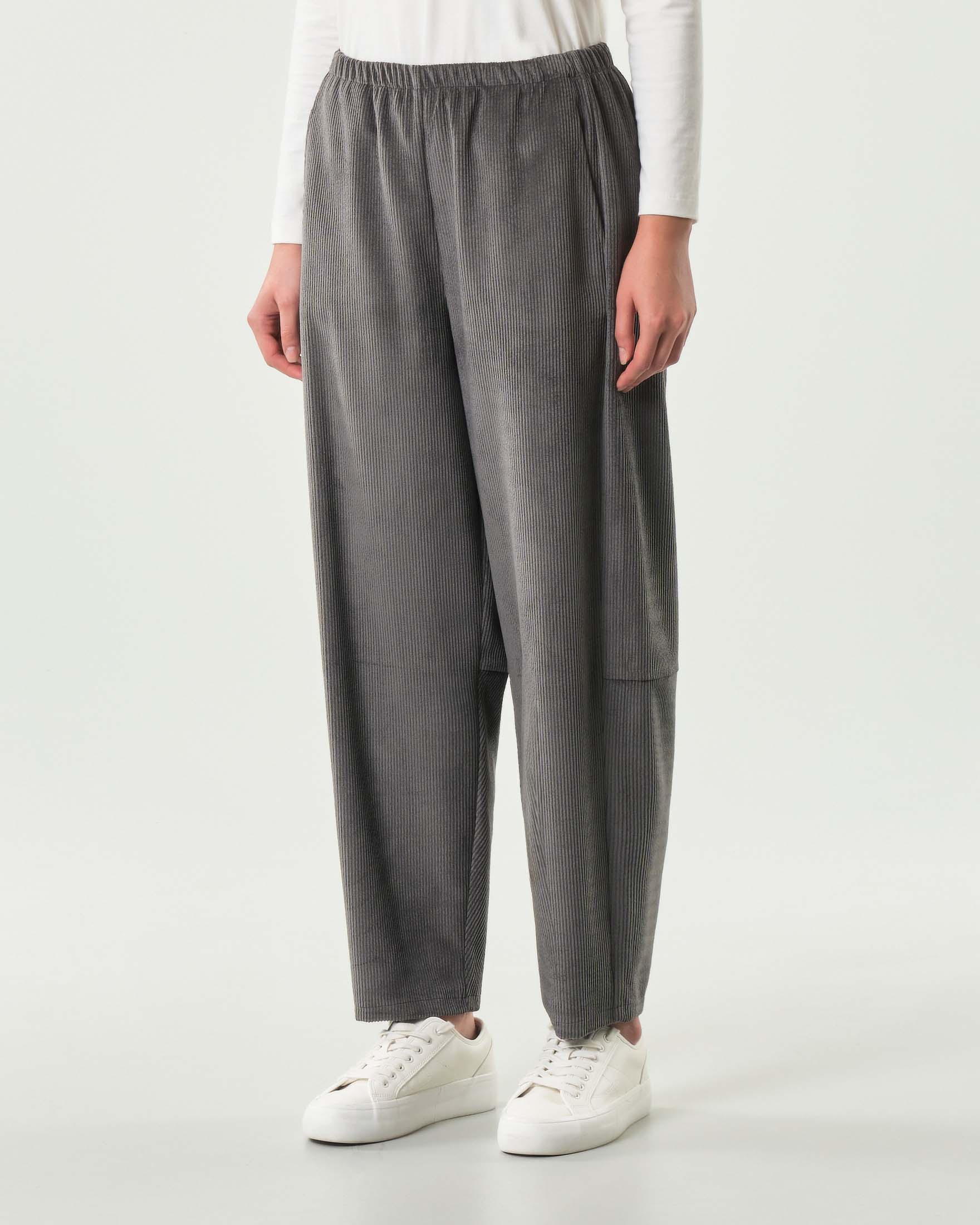 Pantaloni grigi a pallocino Jurerê in velluto stretch a coste con elastico inserito in vita