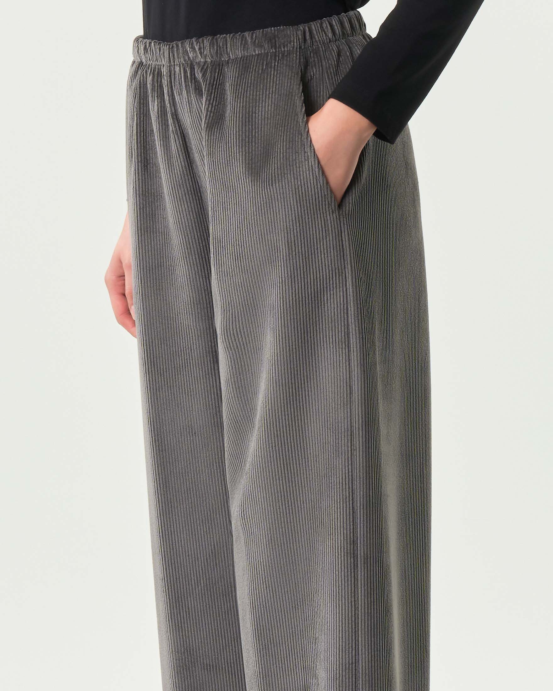 Pantaloni grigi super wide Jurerê in velluto stretch a coste con elastico inserito in vita