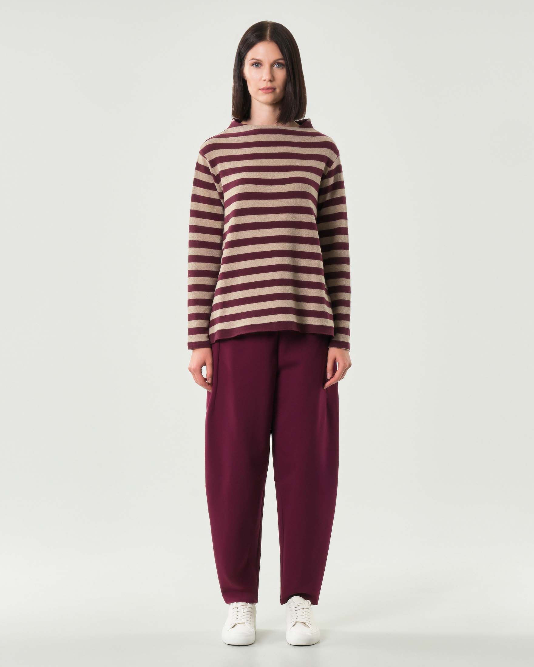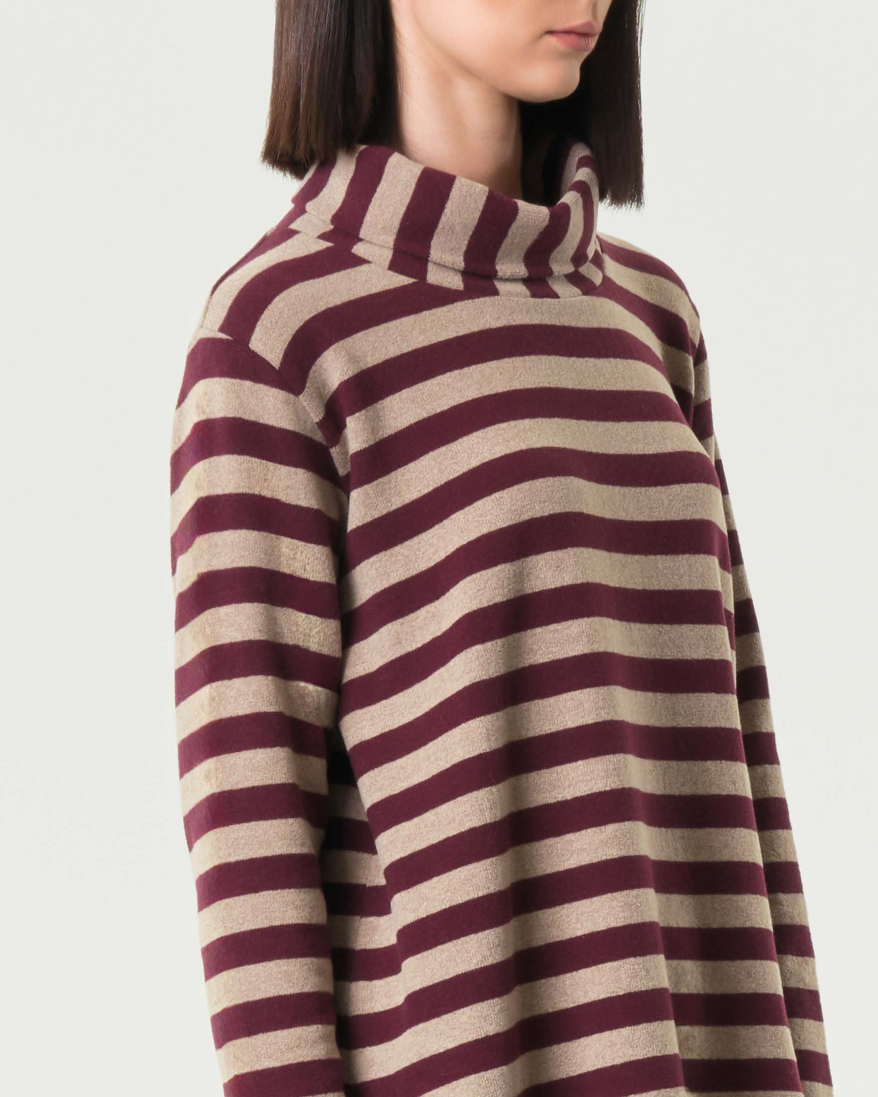Maglia beige a righe bordeaux Jurerê in misto cotone con colletto alto e fondo a punte