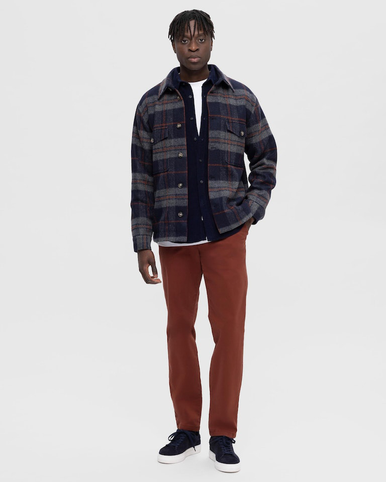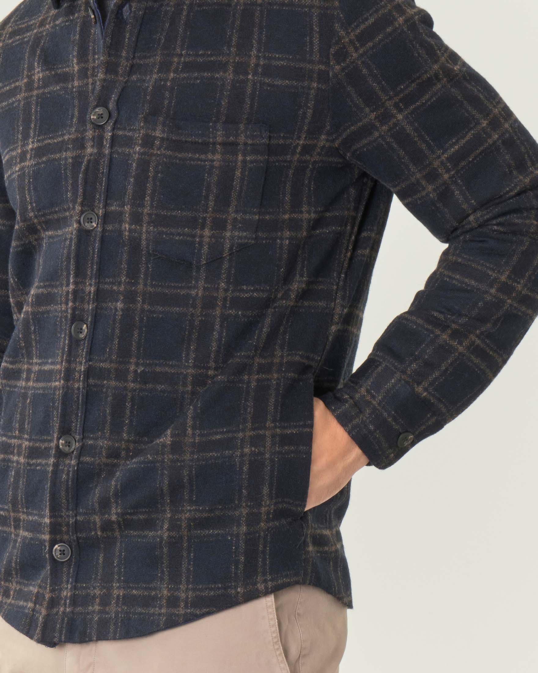 Overshirt a quadri blu grigi e coccio in misto lana con tasche applicate sul petto