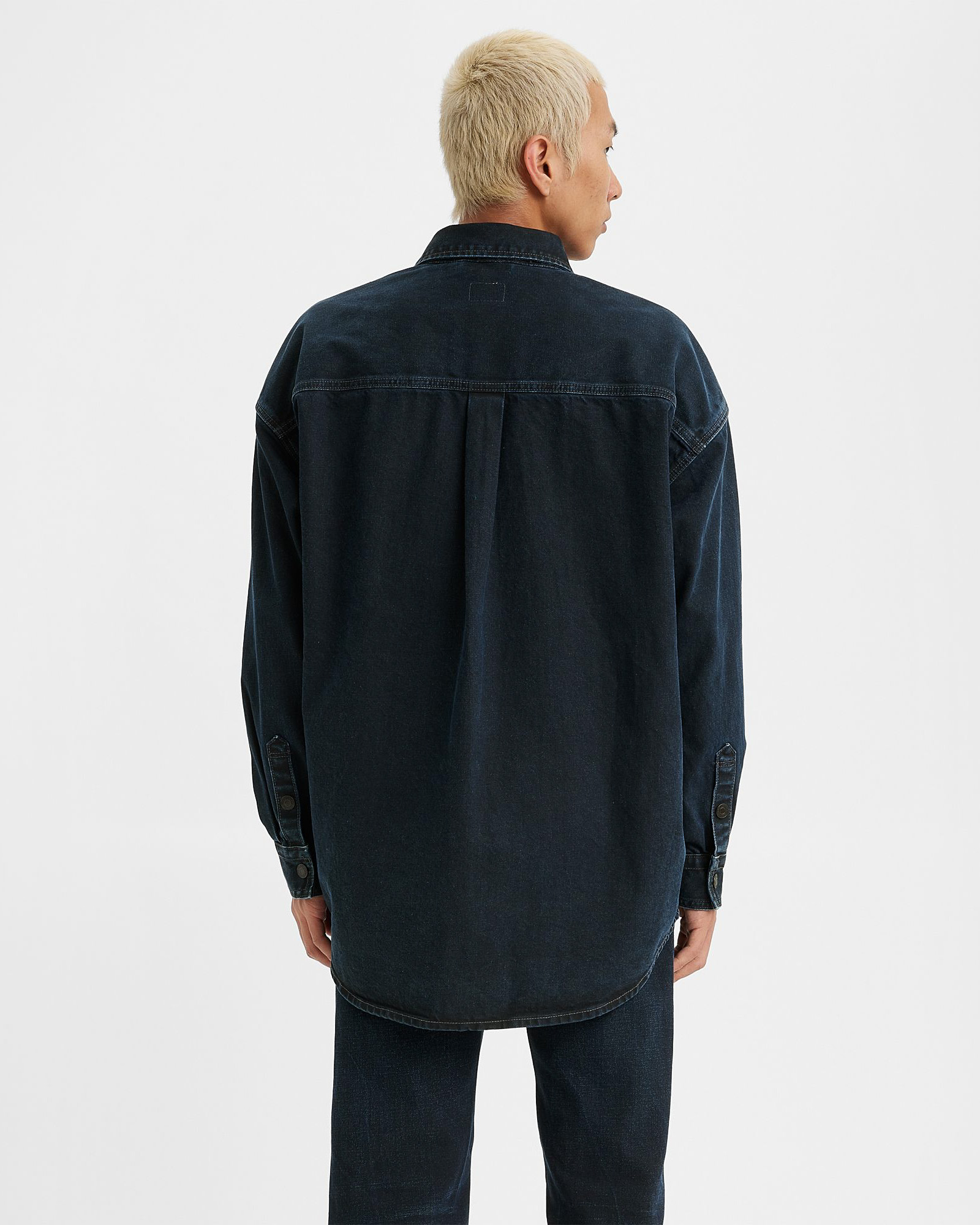 Overshirt in denim lavaggio medio di puro cotone con tasche al petto