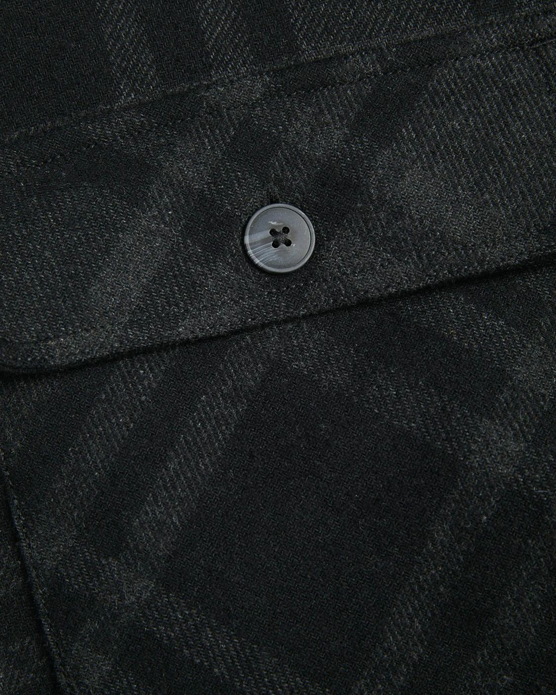 Overshirt antracite e nera in flanella di cotone a fantasia check con tasconi sul petto