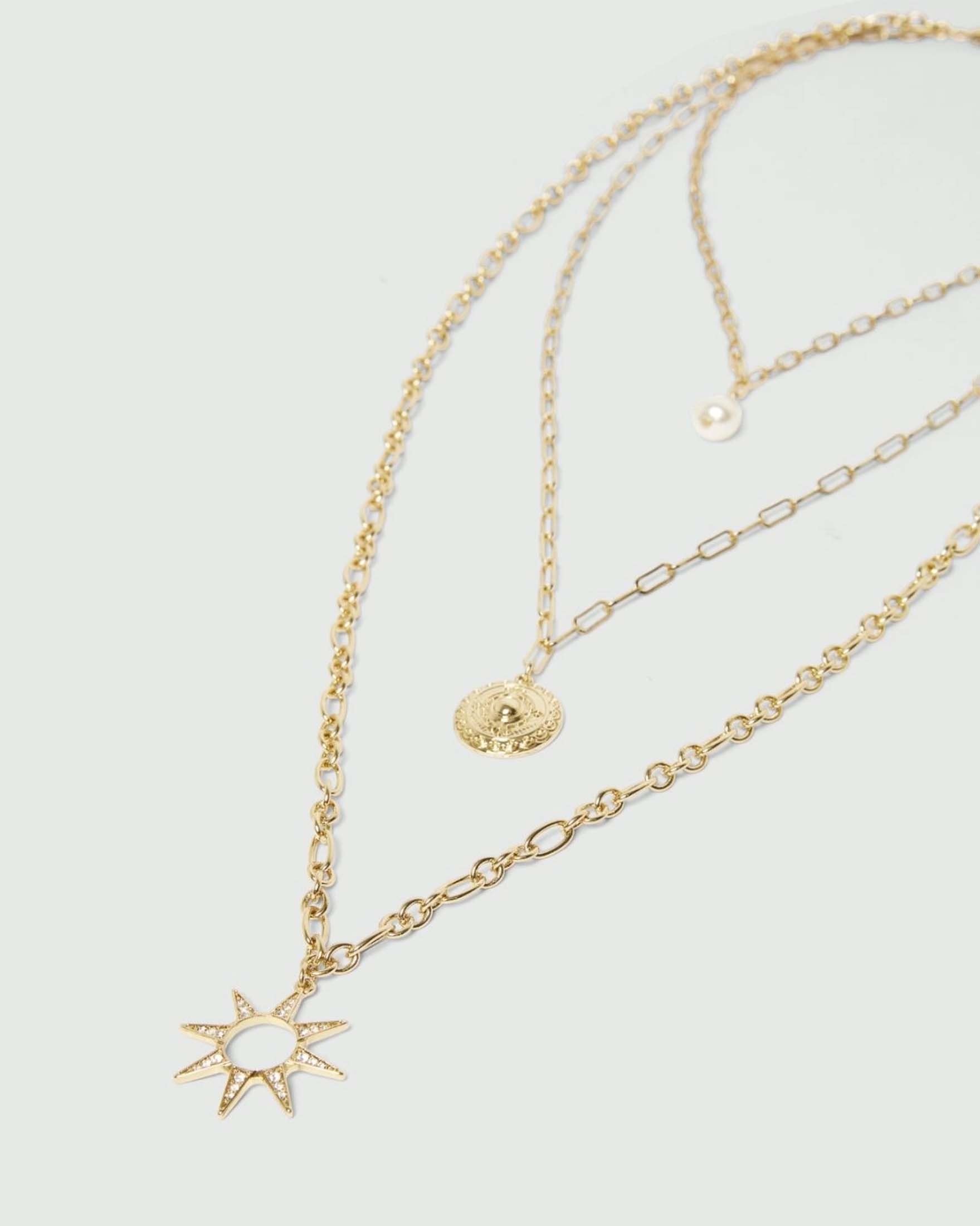 Collana dorata a tre fili Marella con pendenti perla, stella e moneta