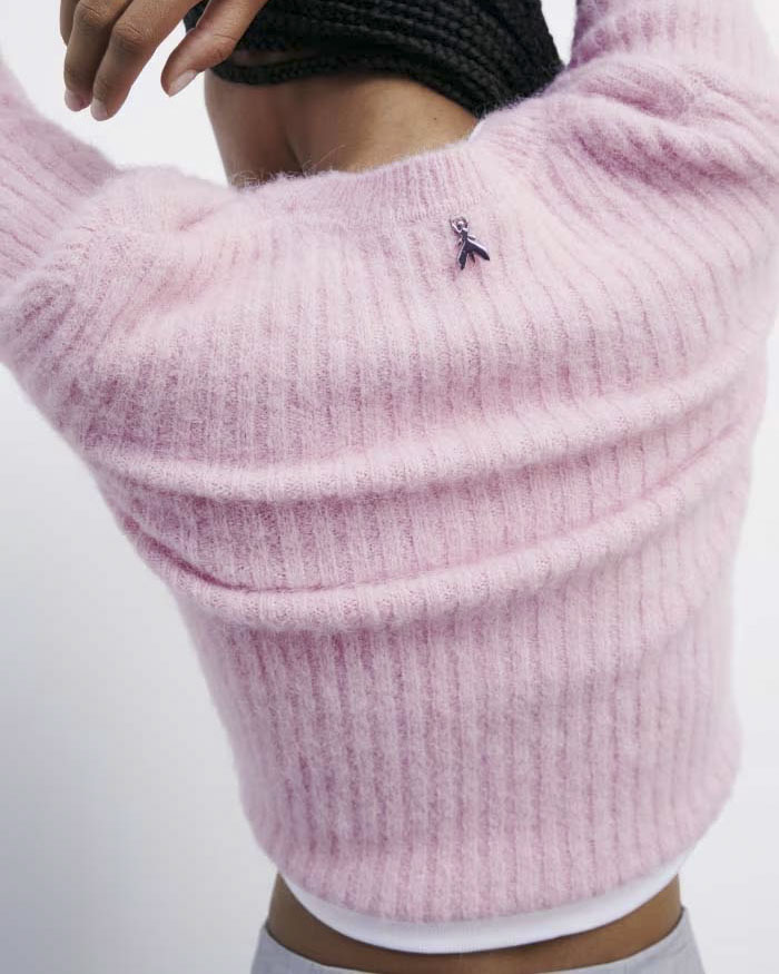 Maglia cropped rosa Patrizia Pepe misto alpaca a coste