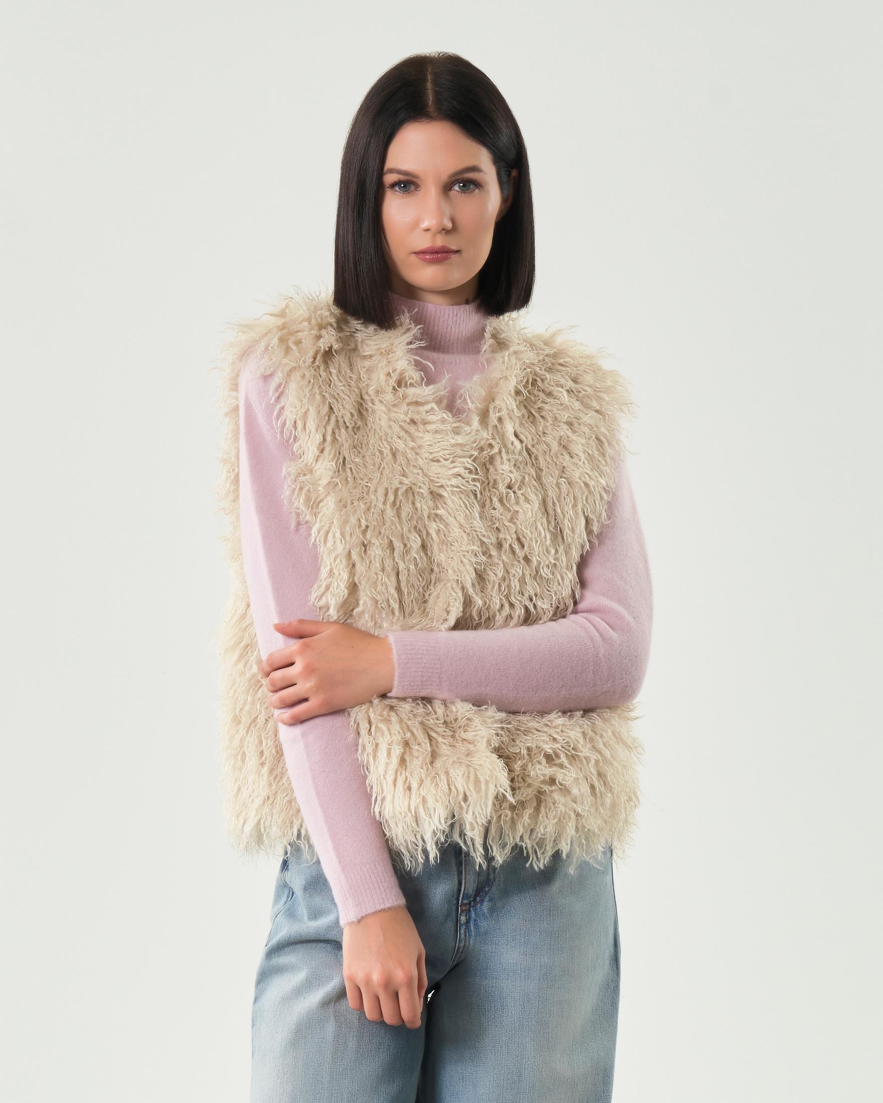 Gilet ecopelliccia beige Hlo! in mongolia con scollo a rever