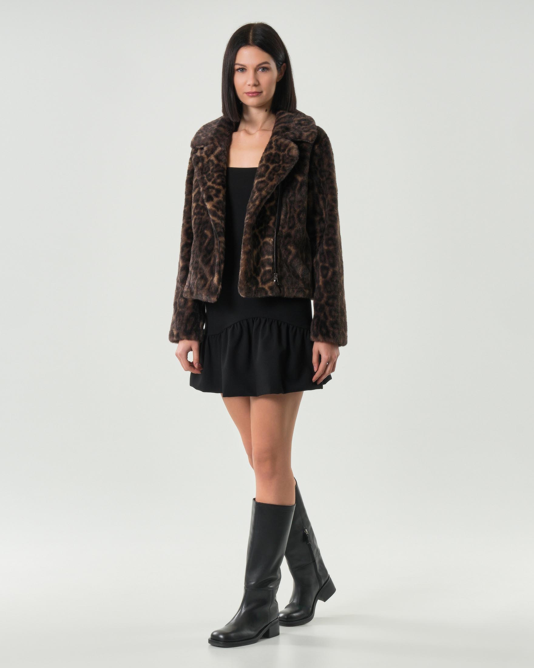 Chiodo in ecopelliccia Hlo! a fantasia animalier con cerniera laterale