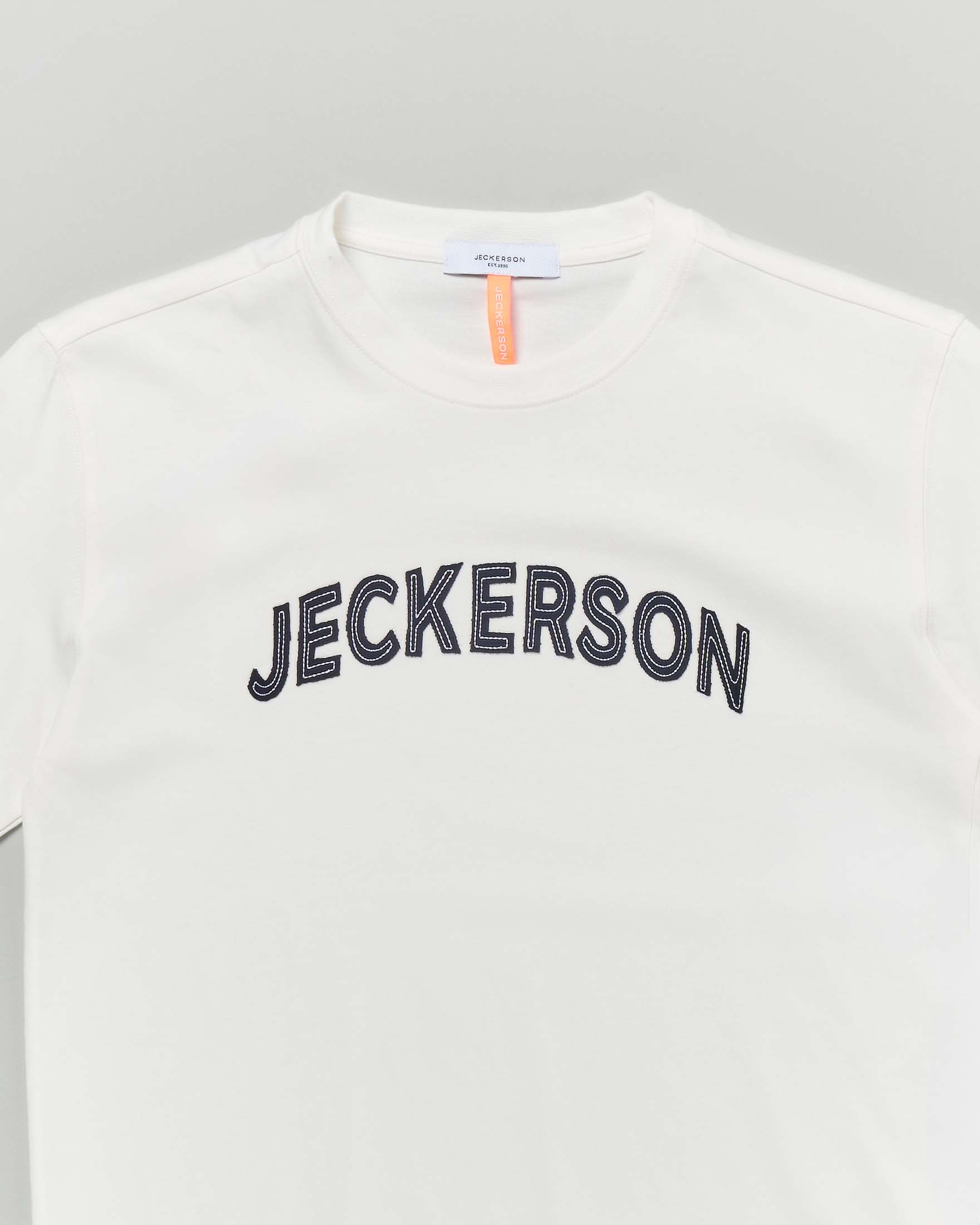 T-shirt bianca Jeckerson a maniche lunghe in cotone con scritta logo