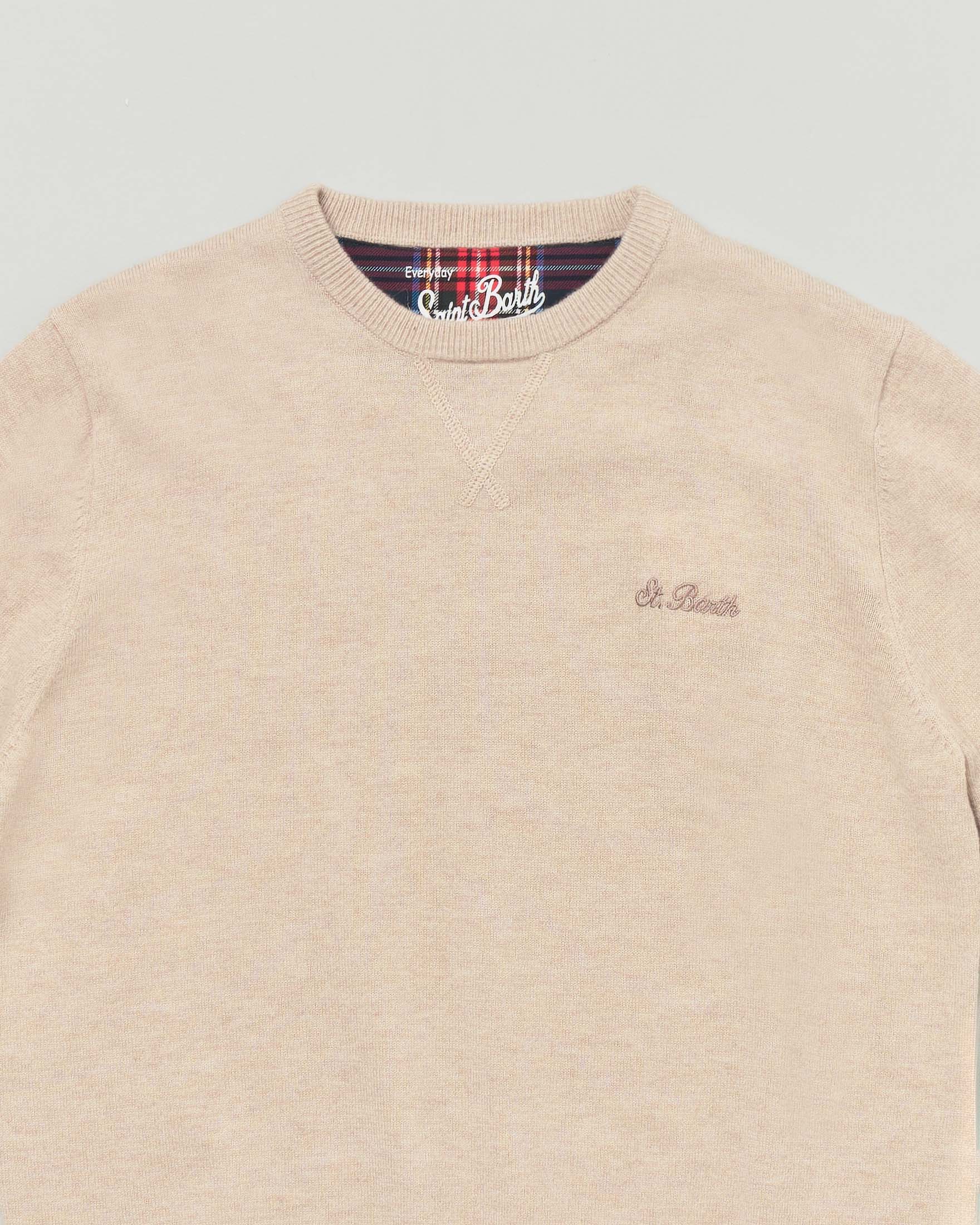 Maglia MC2 Saint Barth beige in pura lana merinos