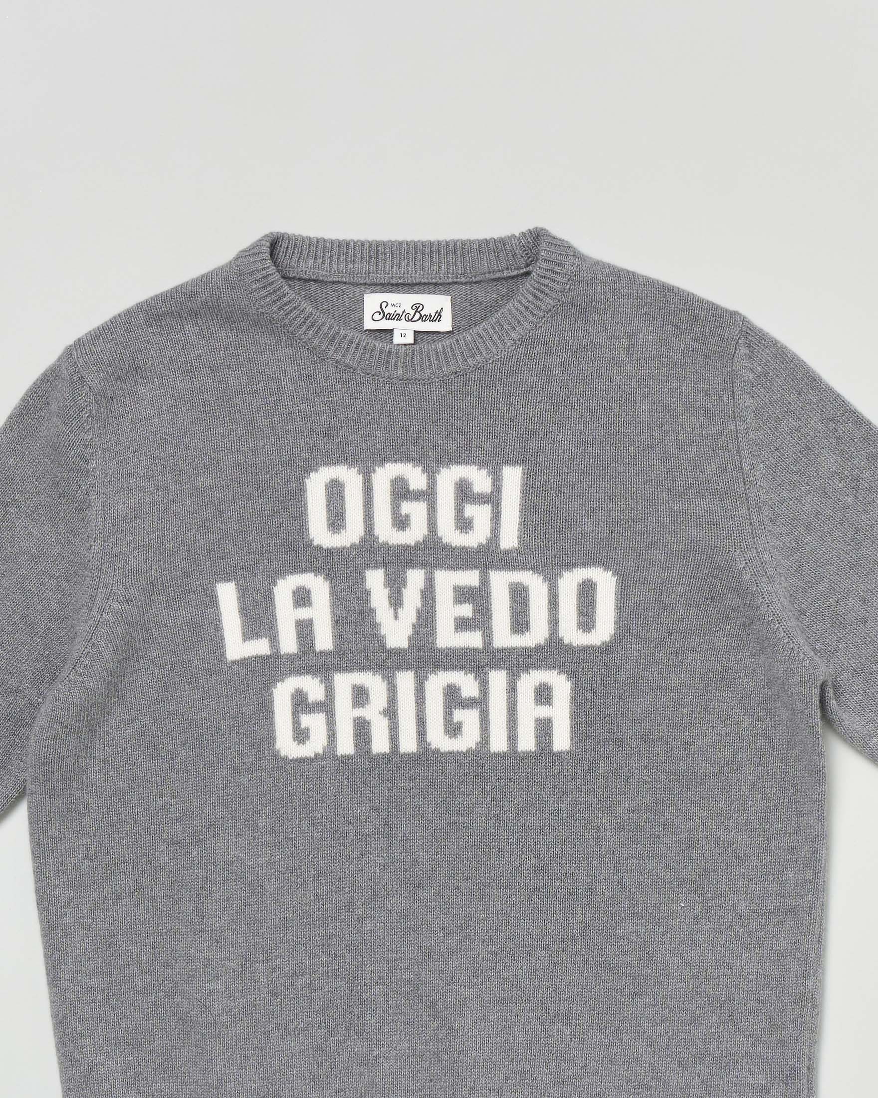 Maglia grigia MC2 Saint Barth girocollo in misto lana con scritta Oggi la vedo grigia