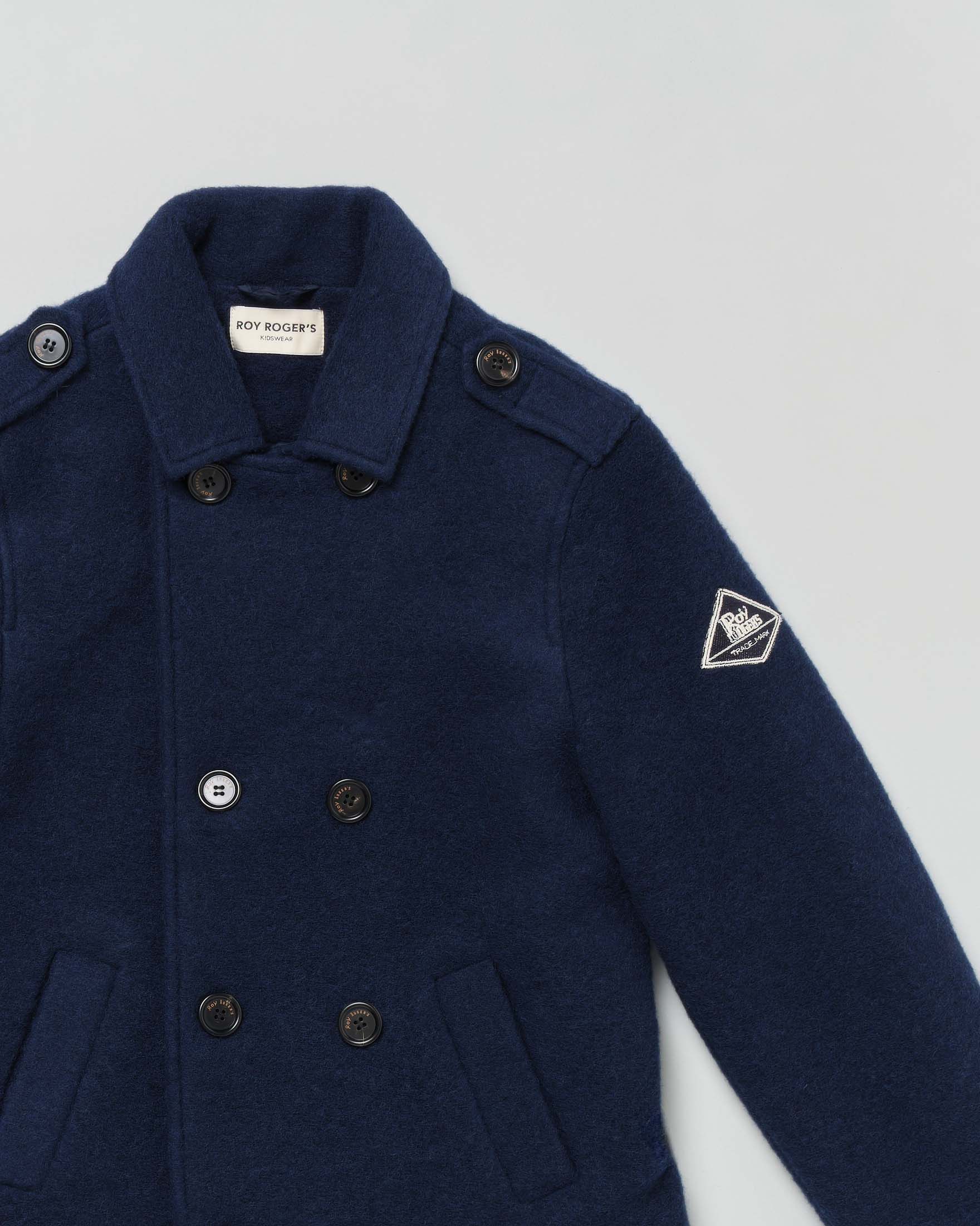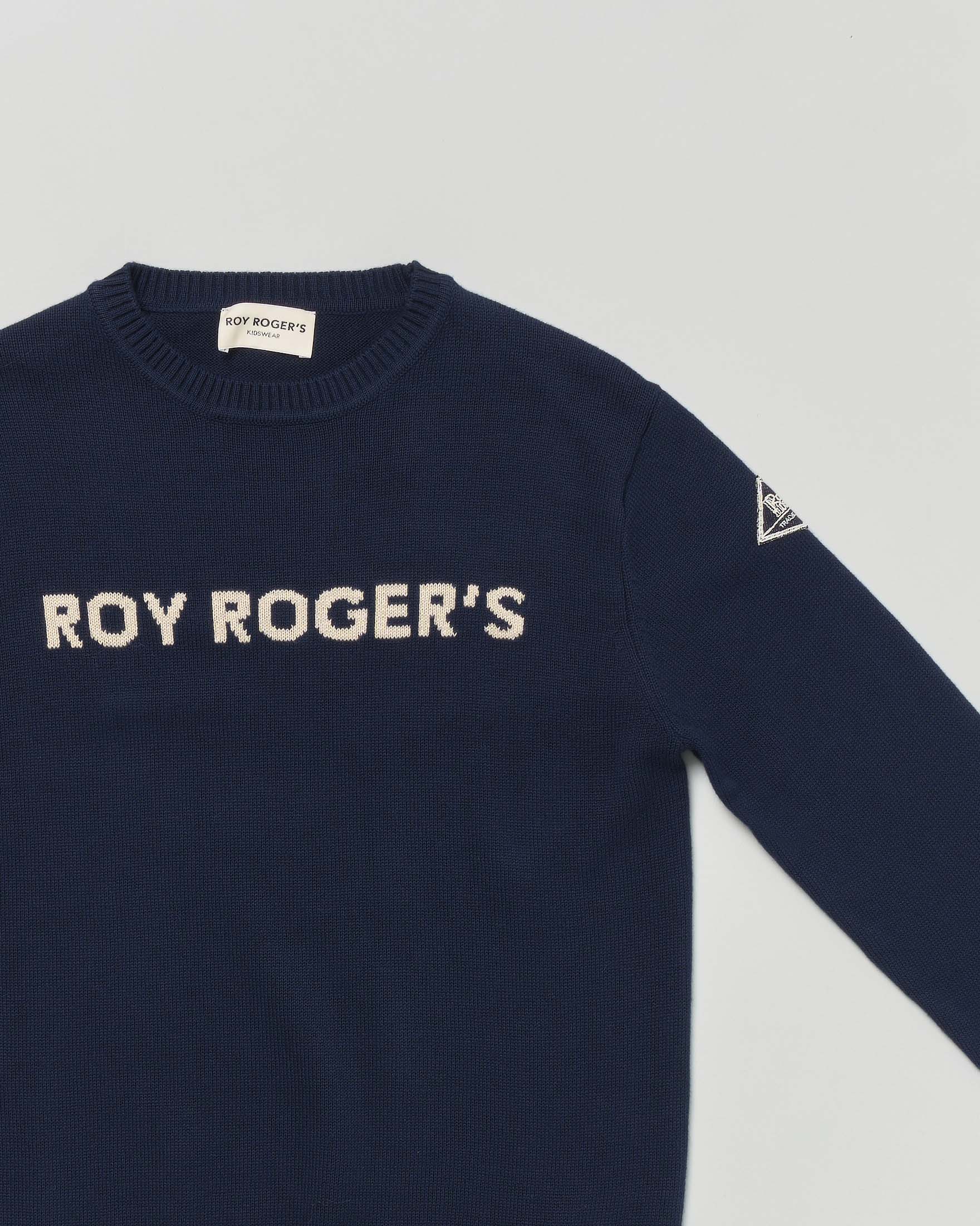 Maglioncino Roy Roger's blu in misto cotone e lana con scritta logo bianca