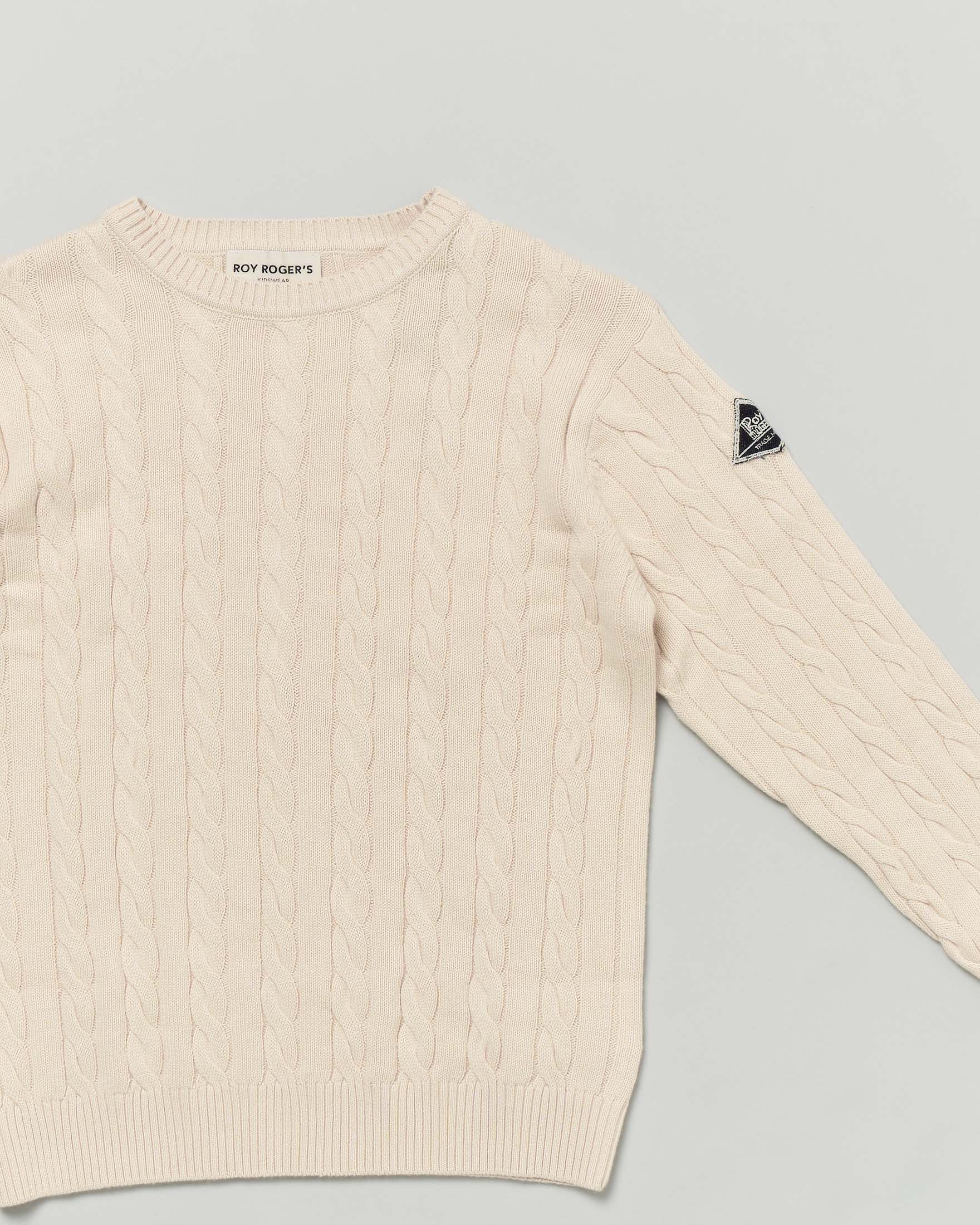 Maglioncino Roy Roger's color ecrù a trecce in misto lana e cotone