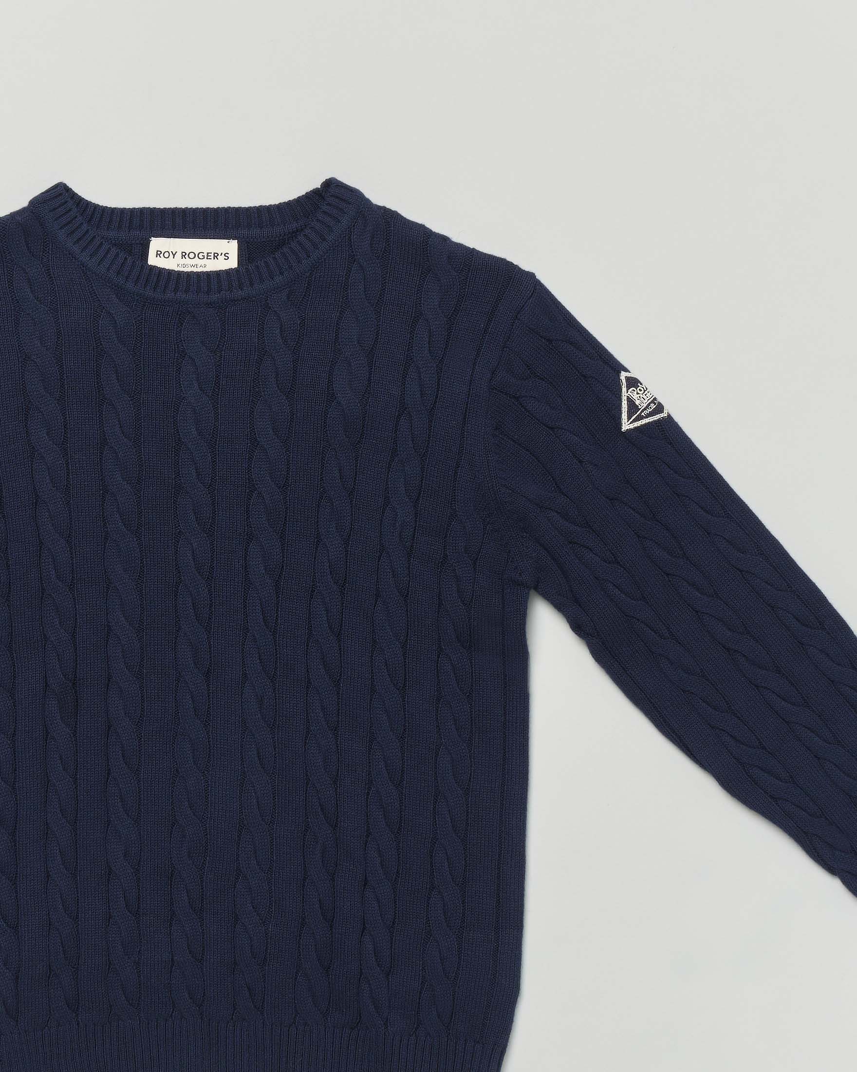 Maglioncino Roy Roger's blu a trecce in misto lana e cotone