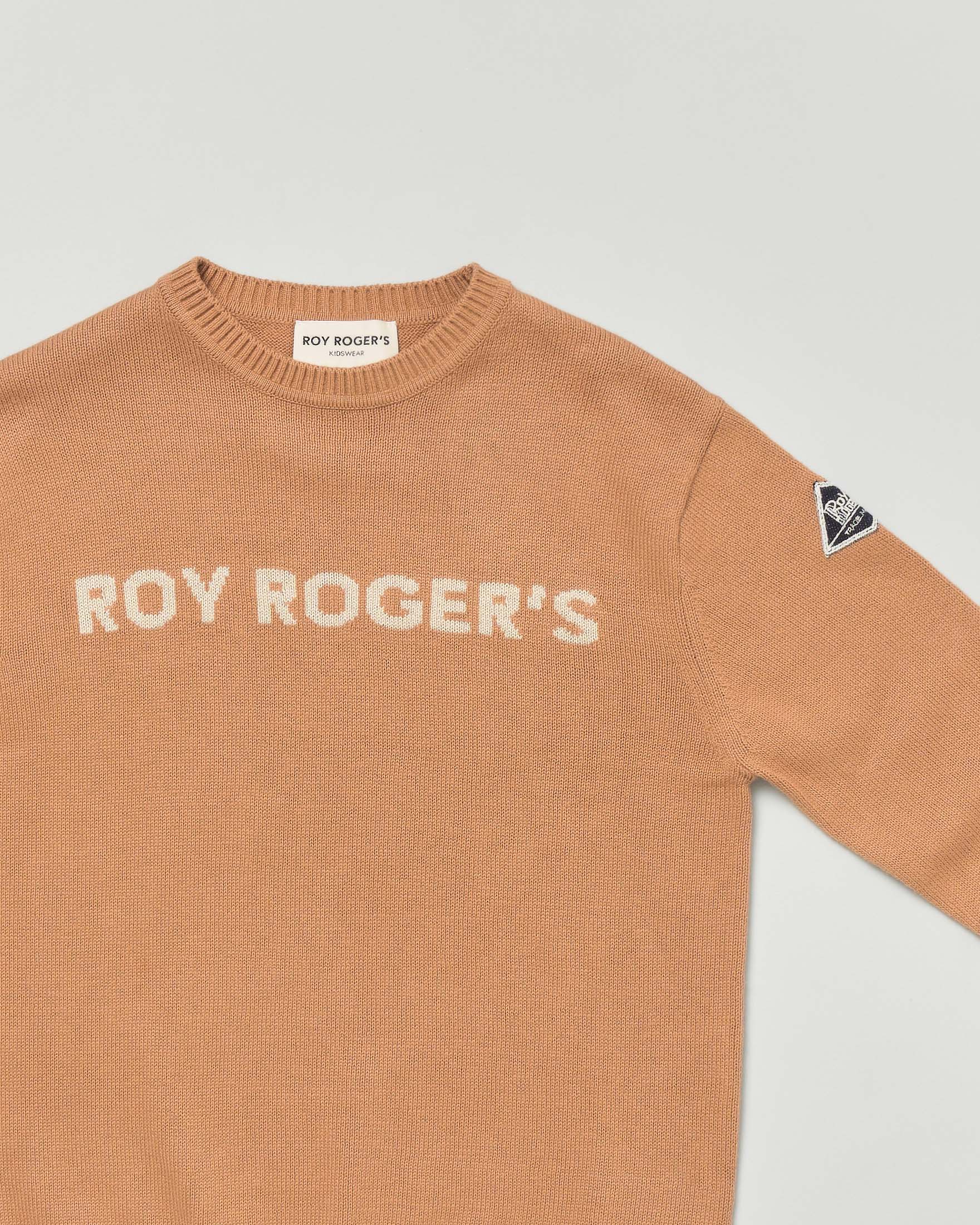 Maglioncino Roy Roger's beige in misto cotone e lana con scritta logo bianca