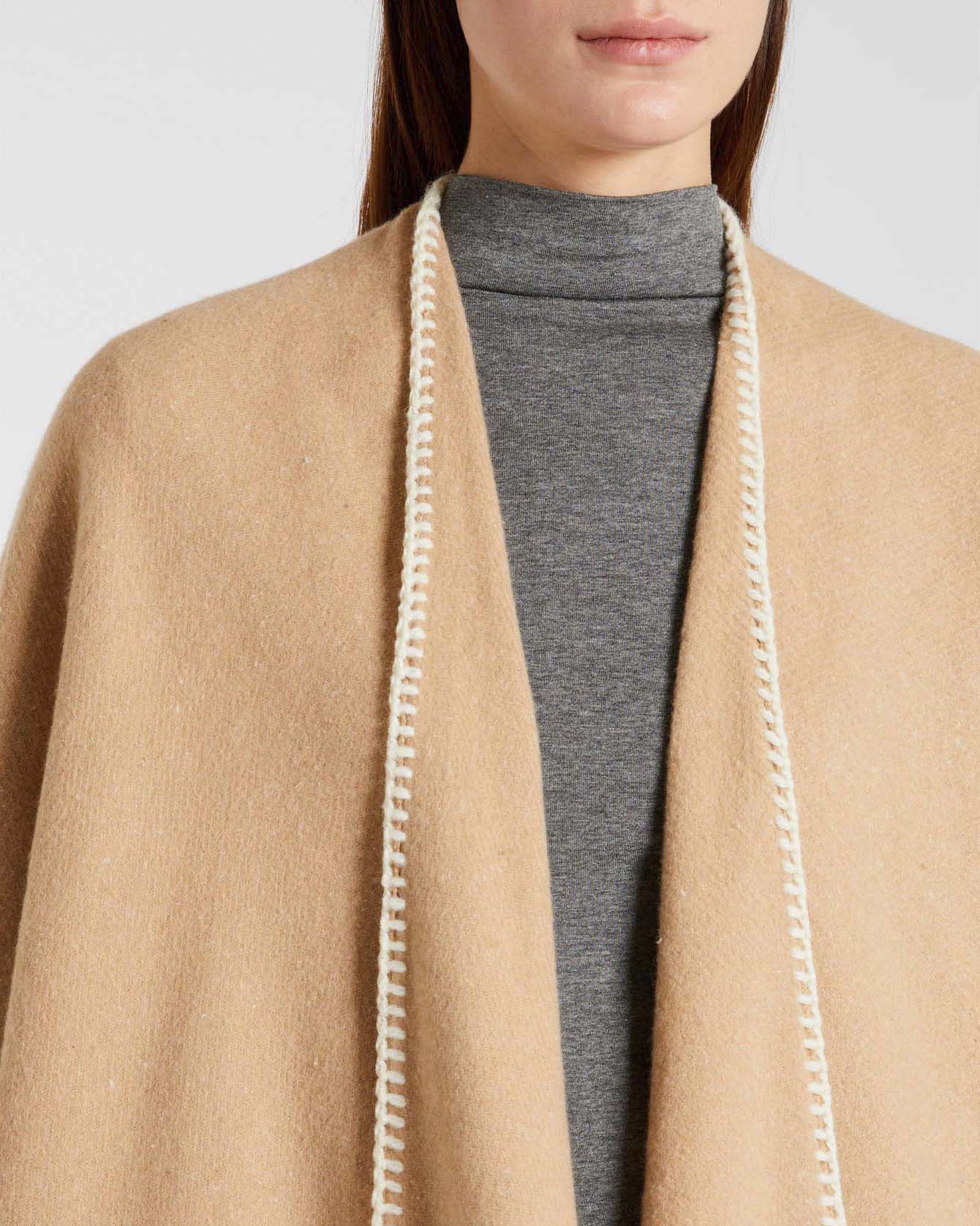 Mantella color cammello Emme Marella in misto cotone con frange sul fondo
