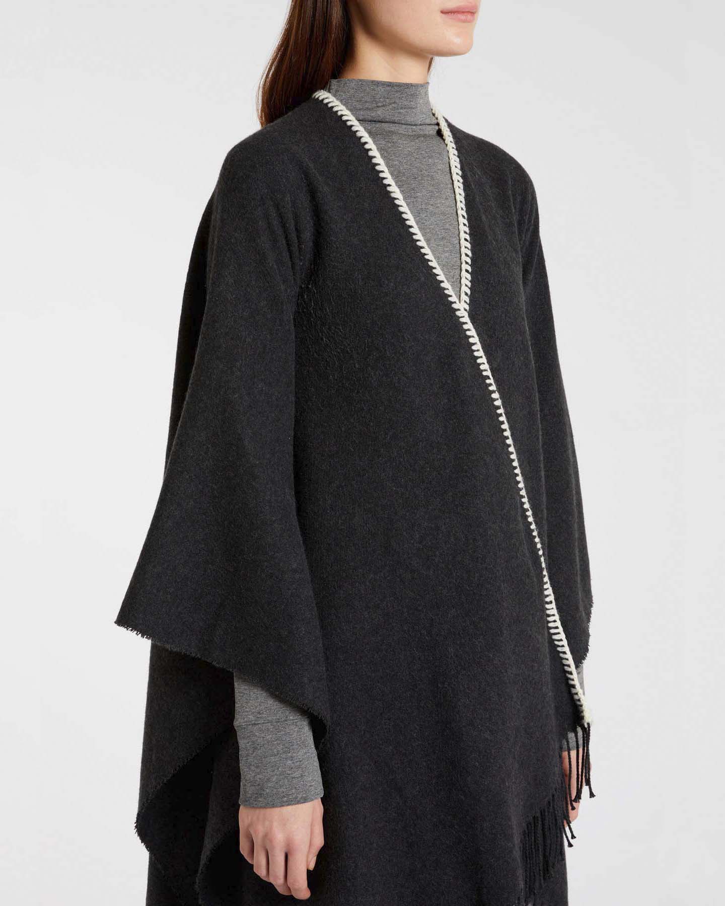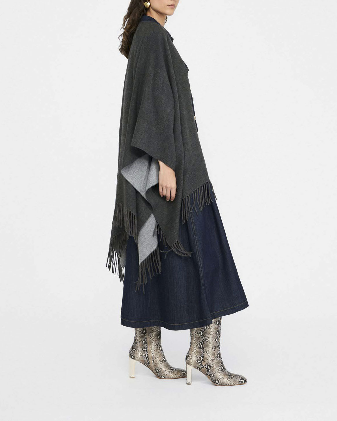 Mantella grigia Emme Marella in misto cotone con frange sul fondo
