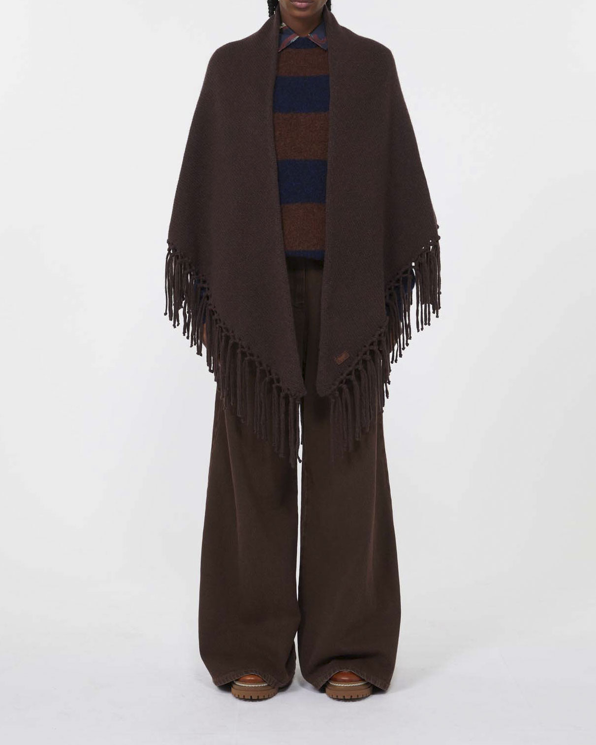 Scialle marrone Weekend Max Mara in lana con frange applicate al fondo